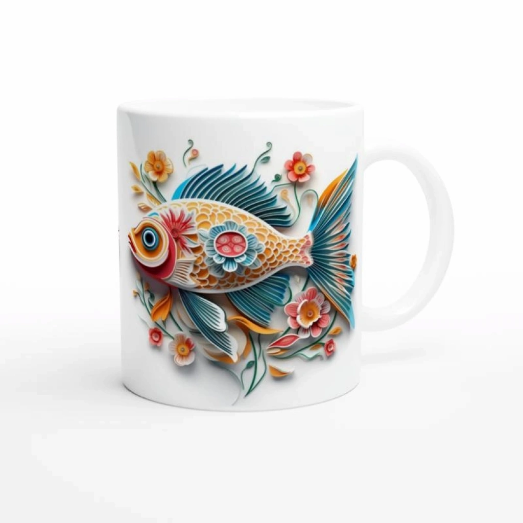 Kağıt Kesim Stilinde Çiçekli Renkli Balık Kupa Bardak