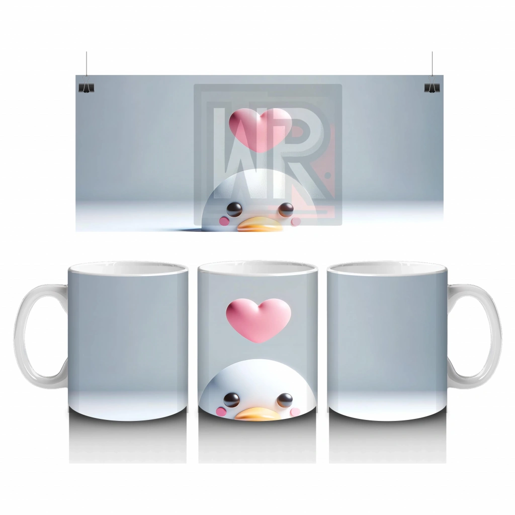 Kalp şeklindeki balonuyla tatlı bir duruş sergileyen beyaz deniz canlısı, sevgi dolu ve eğlenceli bir sahne sunuyor. Romantik detaylarla süslenmiş şirin bir kupa alternatifi.