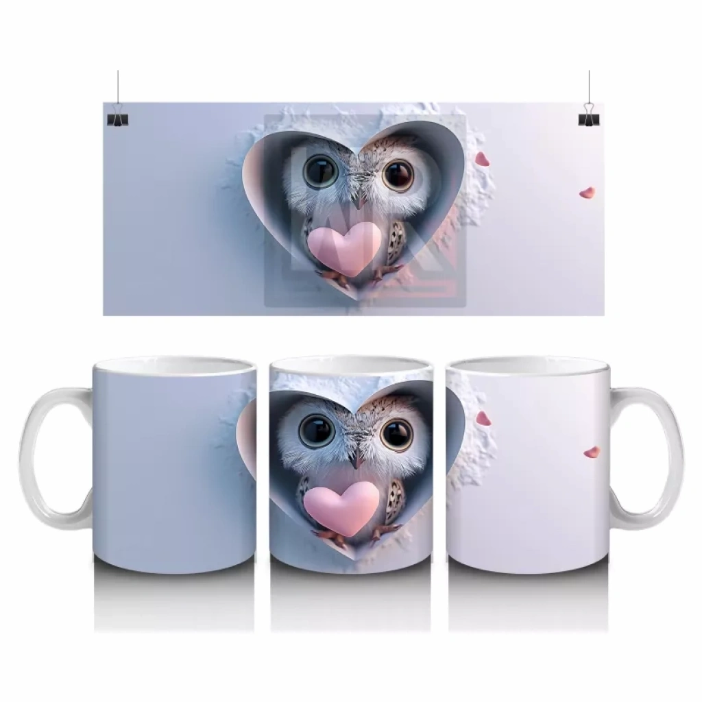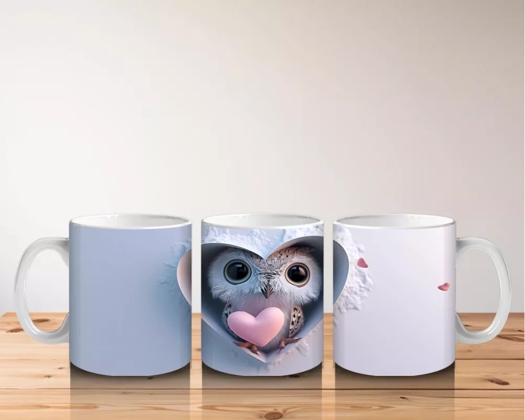Kalp Oyukta Sarılmış Baykuş Figürü – Baskılı Kahve Kupası