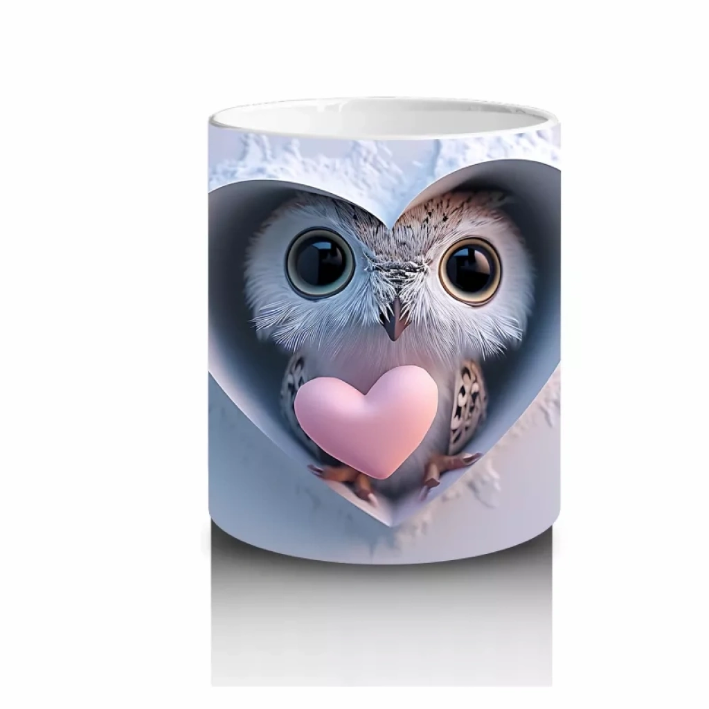 Kalp şeklindeki oyukta sarılmış baykuş figürü, sevgi ve şefkati sıcak bir şekilde yansıtıyor. İçten ve samimi detayları sevenlere ideal bir kupa.
