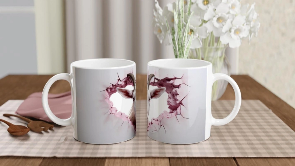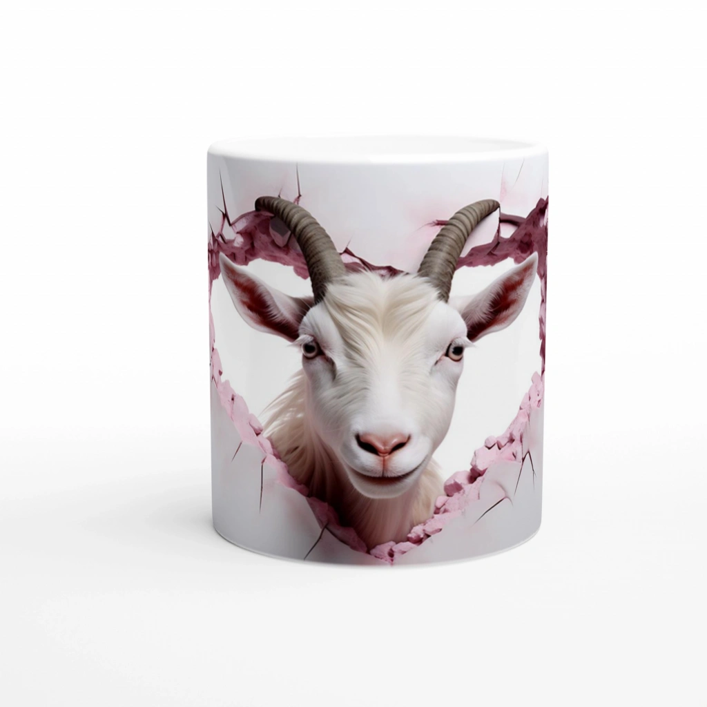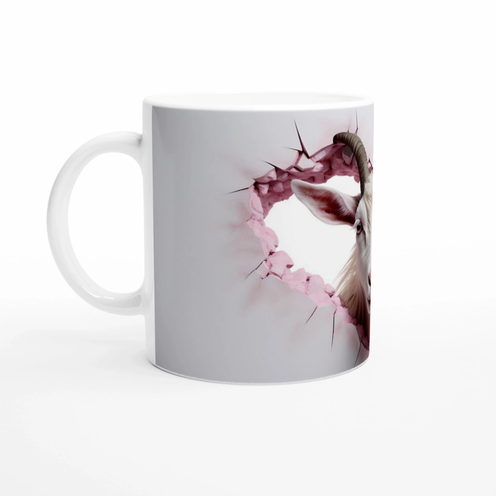 Kalp şeklinde çatlamış duvardan başını uzatmış bu sempatik keçi figürü, Keçi Temalı Baskılı Kupa Bardak tasarımında hem dikkat çekici hem de sevimli bir etki yaratıyor. Hayvanseverlere özel hazırlanan bu kupa, doğa ve özgürlük temasını mutfağınıza taşıyor.