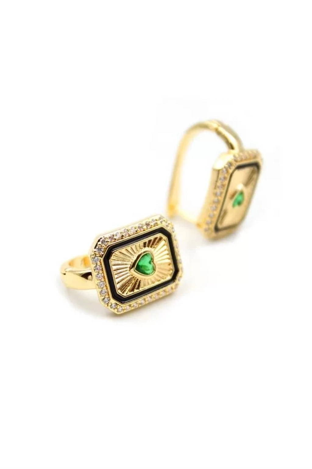Kalp Taşlı Küpe - Yeşil