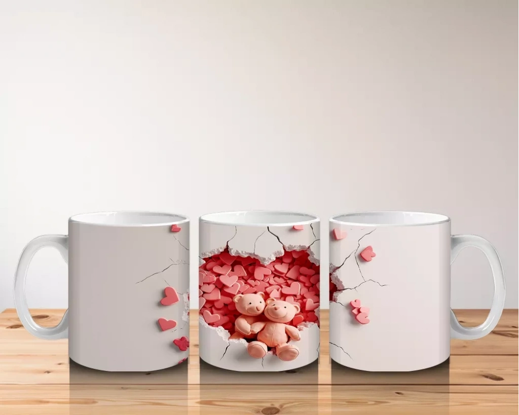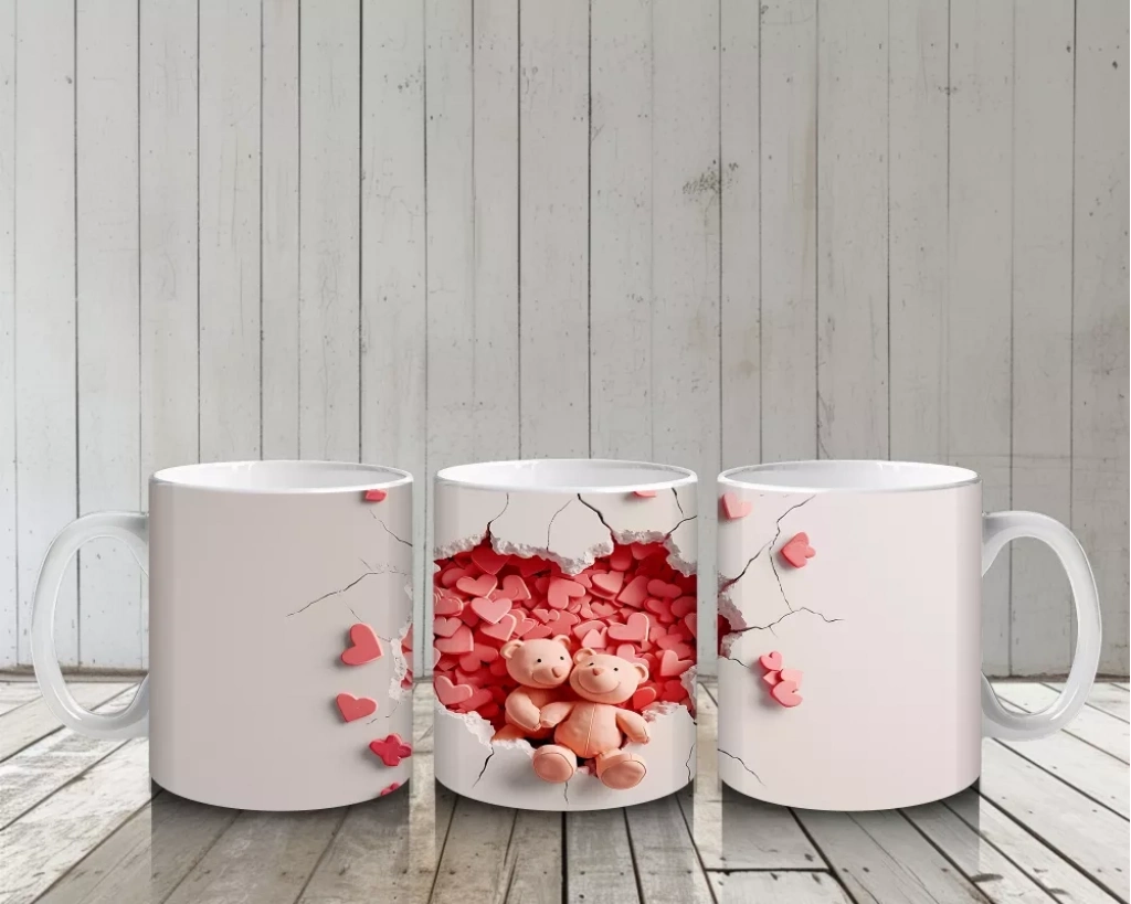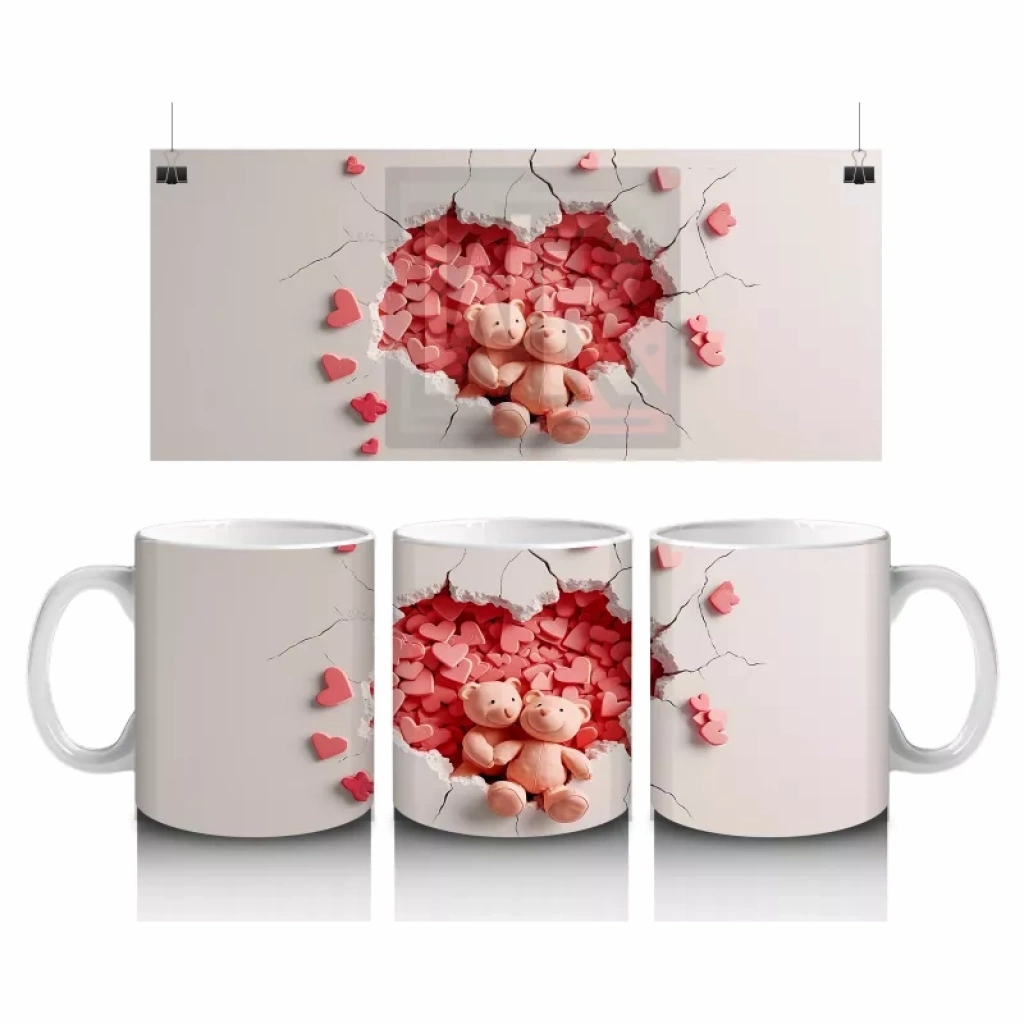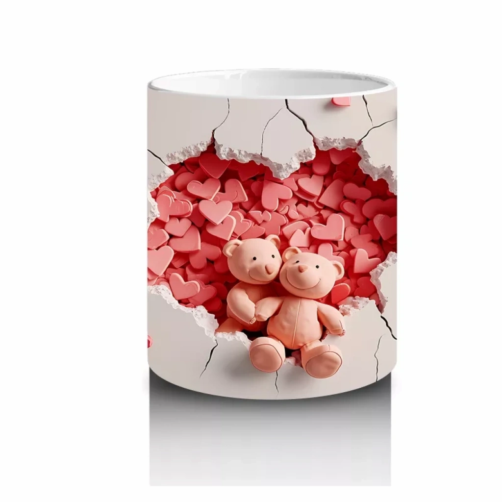 Kalplerle süslenmiş arka planda duran tatlı ayıcıklar, sıcak ve neşeli bir atmosfer yaratıyor. Romantik ve içten detayları sevenler için ideal bir tasarım.