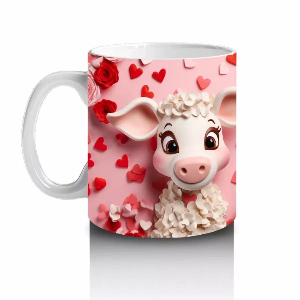 Kalpli arka plan önünde duran bu minnoş kuzu, yumuşacık enerjisiyle kahve keyfinize sevgi katıyor. Saflık ve neşeyle dolu, özellikle çocuklara ve romantik ruhlara hitap eden tatlı bir tasarım.