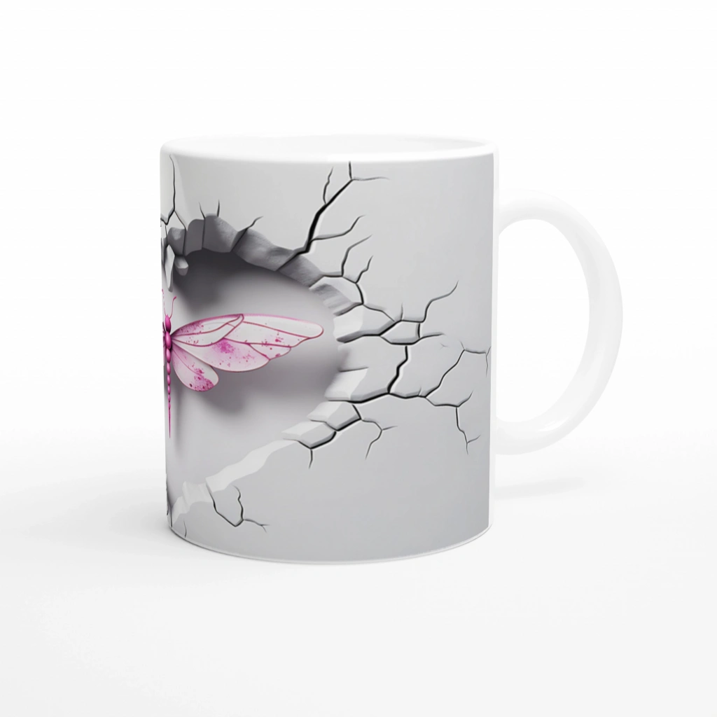 Kalpli Çatlak Duvar Efektli Pembe Yusufçuk Temalı Baskılı Kupa Bardak