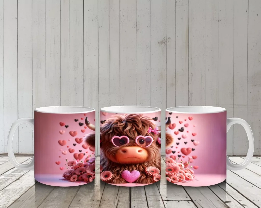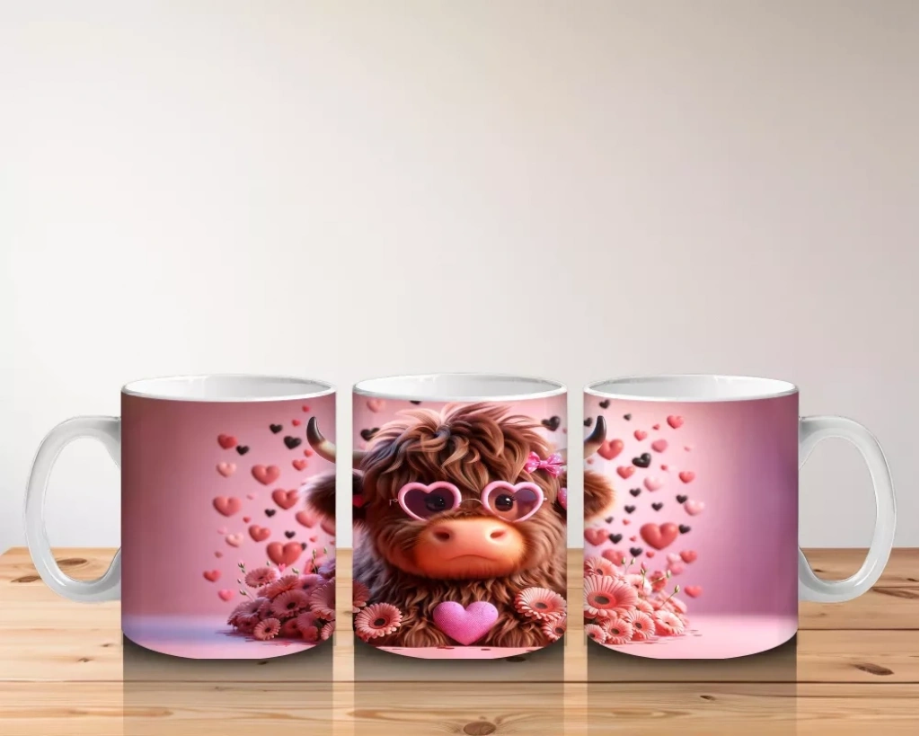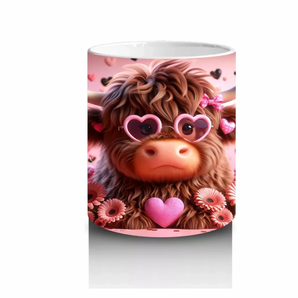 Kalpli desenlerle süslenmiş sevimli boğa figürü, sıcaklık ve sevgi dolu bir atmosfer yaratıyor. Romantik ve neşeli tasarımlar arayanlar için özel bir kupa.