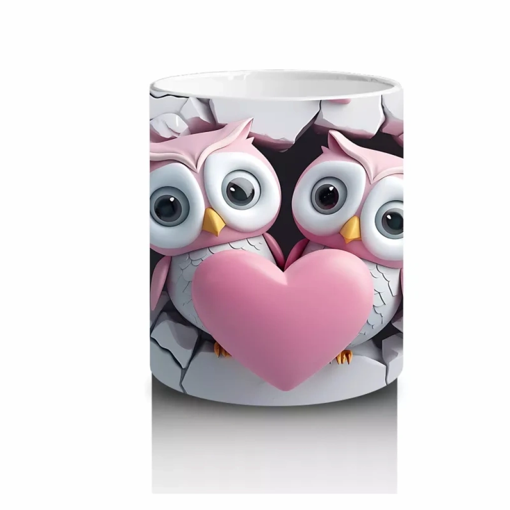 Kalpli duvar arasında birbirine sokulmuş baykuş çifti, aşkın en sevimli halini yansıtıyor. Romantik ruhları gülümsetecek bu özel tasarım, duygusal anlara eşlik eder.