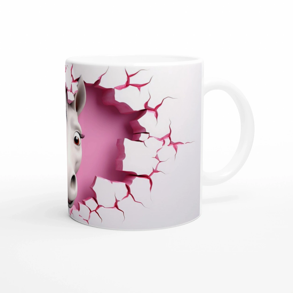 Kalpli Duvarı Delen Neşeli At Temalı Baskılı Kupa Bardak, pembe kalp şeklinde çatlamış duvarın içinden neşeyle bakan sevimli at figürüyle dikkat çeker. Güne enerjik başlamak isteyenler için hem eğlenceli hem de anlamlı bir kupa seçeneği sunar.