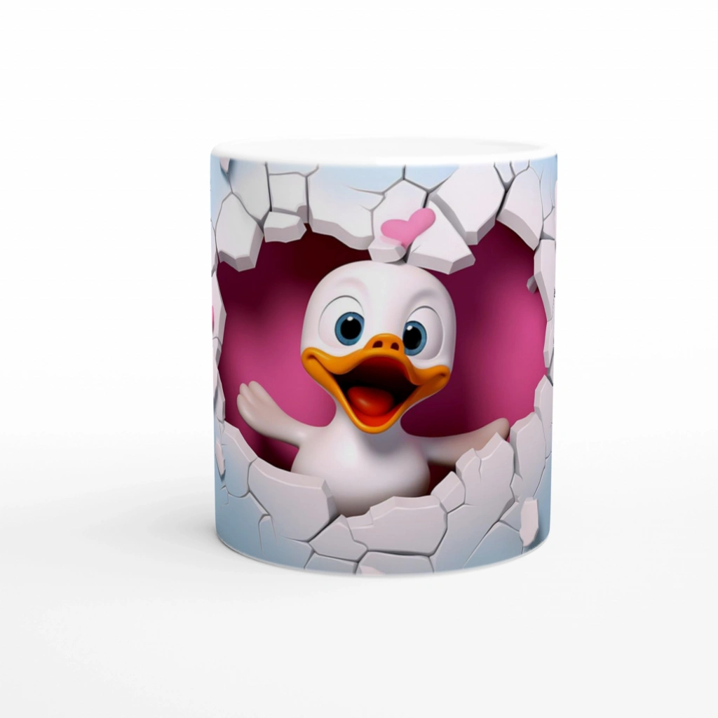 Kalpli Duvarı Delen Sevimli Ördek Temalı Baskılı Kupa Bardak, pembe kalp şeklindeki çatlağın içinden çıkan sevimli ördek karakteriyle dikkat çeker. Eğlenceli ve sevecen tasarımıyla hem çocuklara hem de içindeki çocuğu unutmayanlara hitap eder.