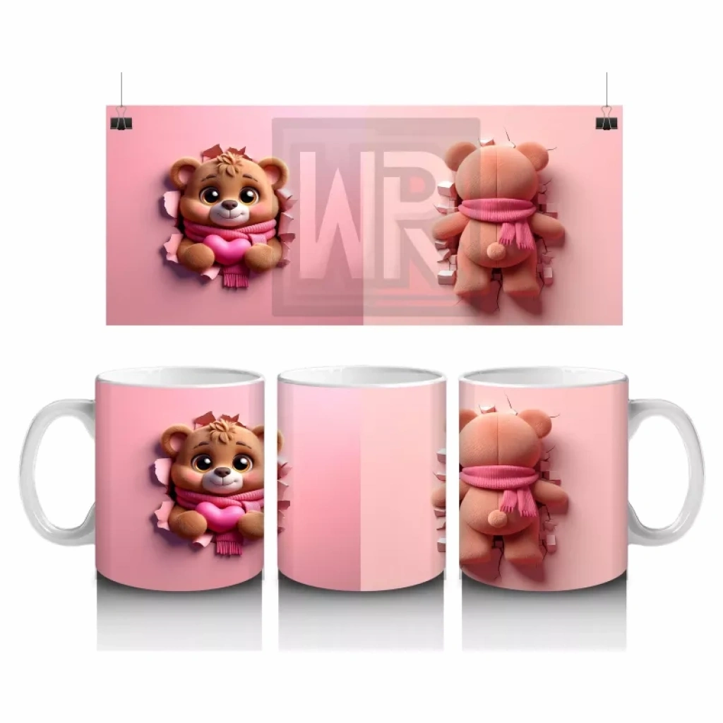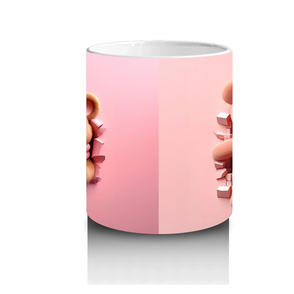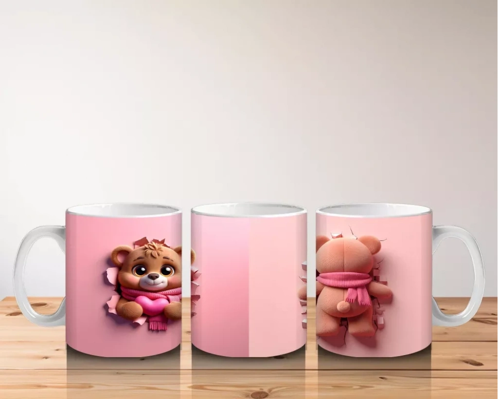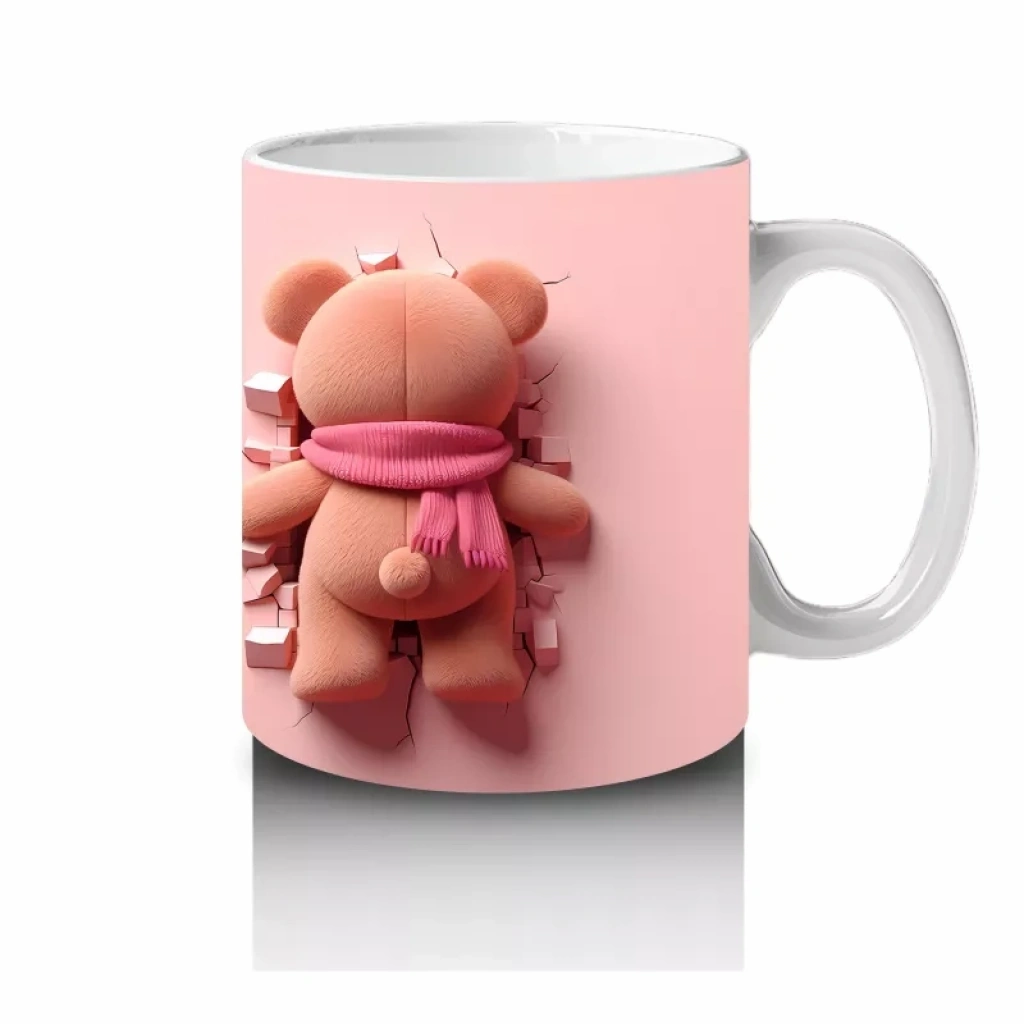 Kalpli Figür Tutan Sevimli Ayıcık Karakteri (Ön ve Arka) – Baskılı Kahve Kupası