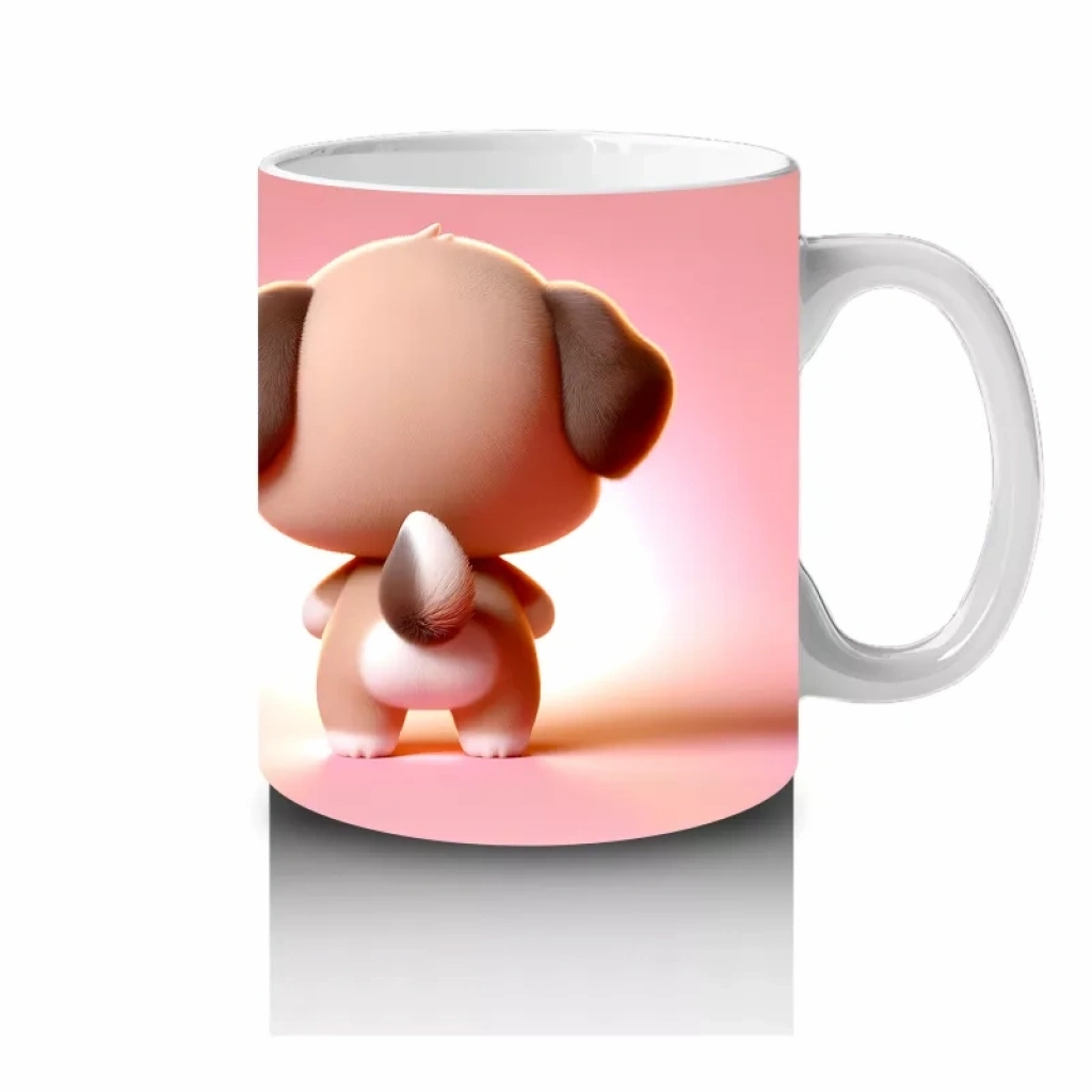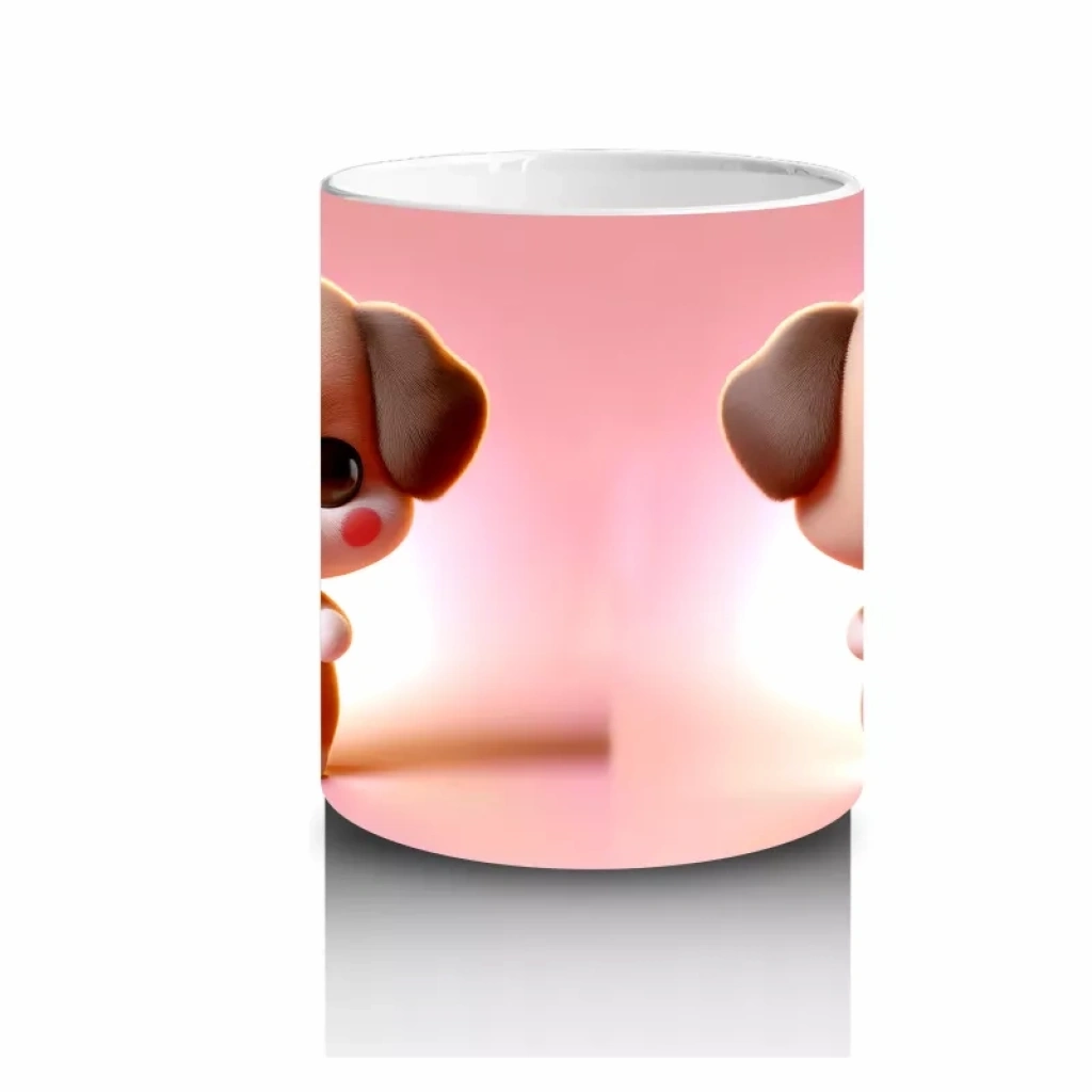 Kalpli Figür Tutan Sevimli Köpekçik (Ön ve Arka) – Baskılı Kahve Kupası