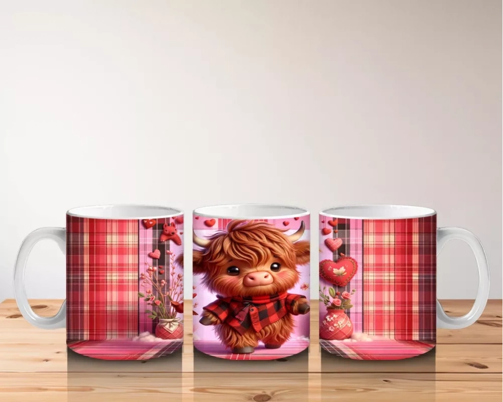 Kalpli Fon Üzerinde Ayakta Duran Sevimli Buzağı – Baskılı Kahve Kupası