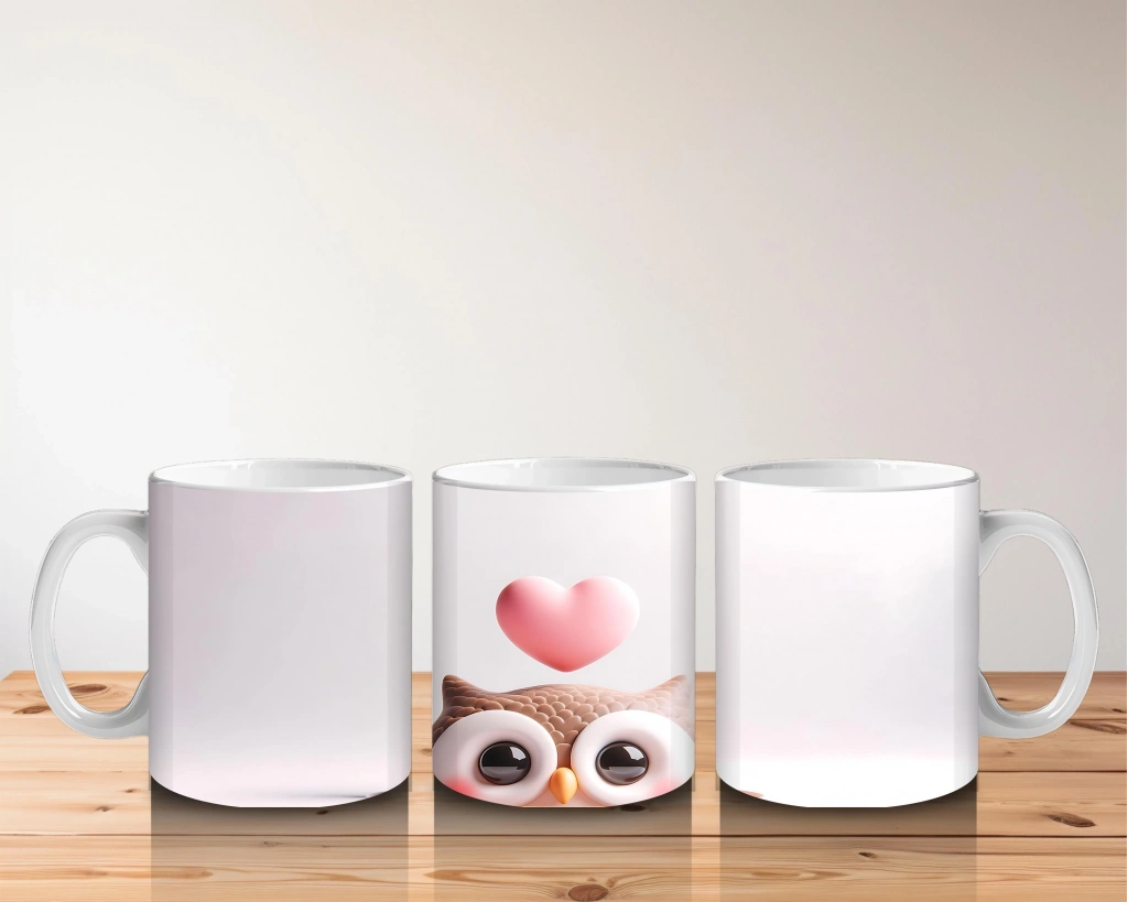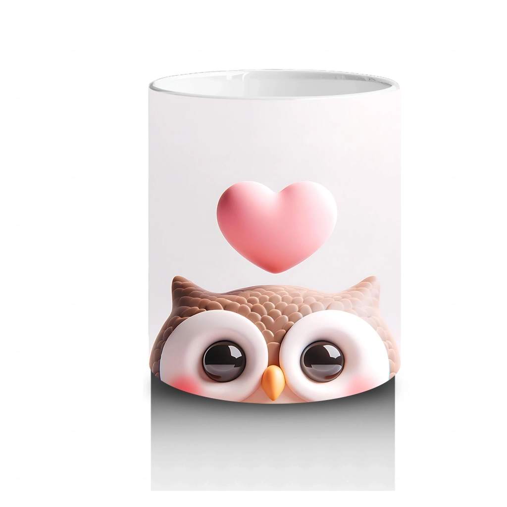 Kalpli Gözlerle Bakan Sevimli Baykuş – Baskılı Kahve Kupası
