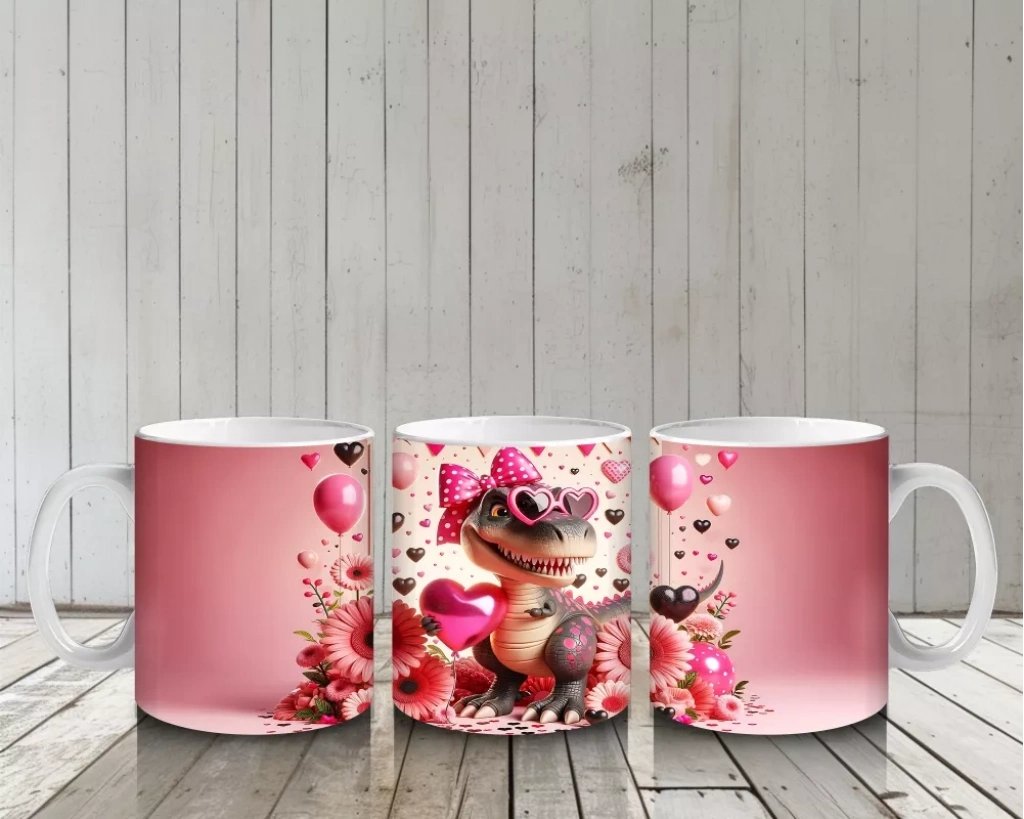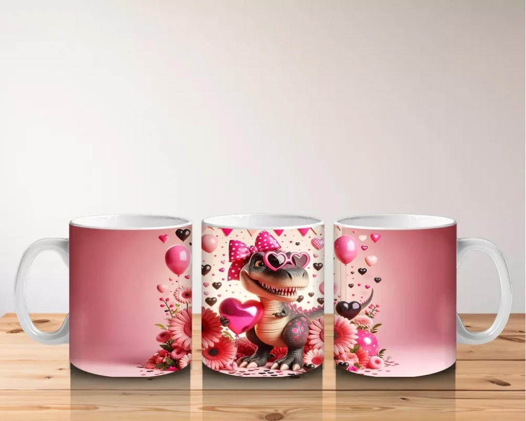 Kalpli gözlük takan dinozor figürü, çiçekler arasında neşeli ve özgün bir tasarım sunuyor. Eğlenceli ve sıcak detayları sevenler için özel bir kupa alternatifi.