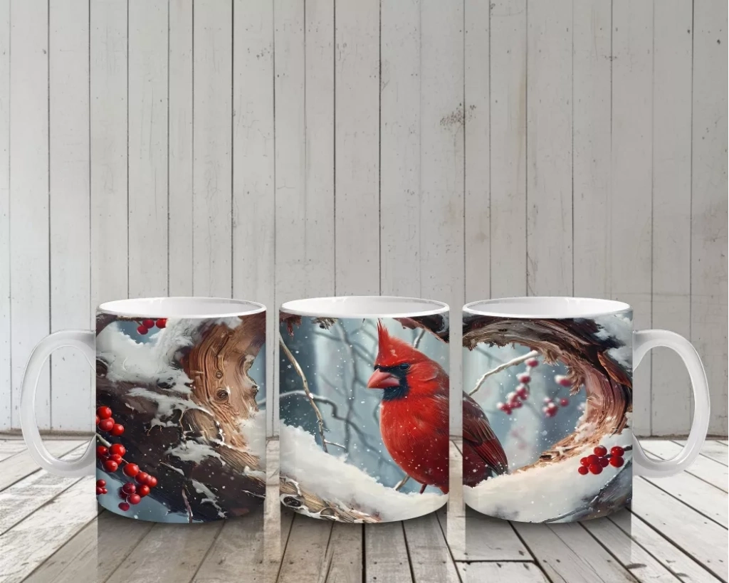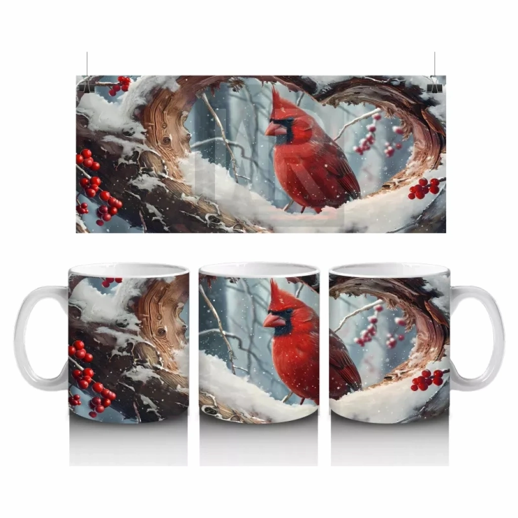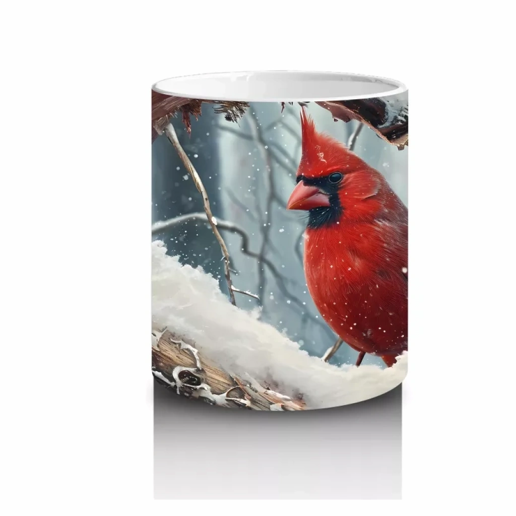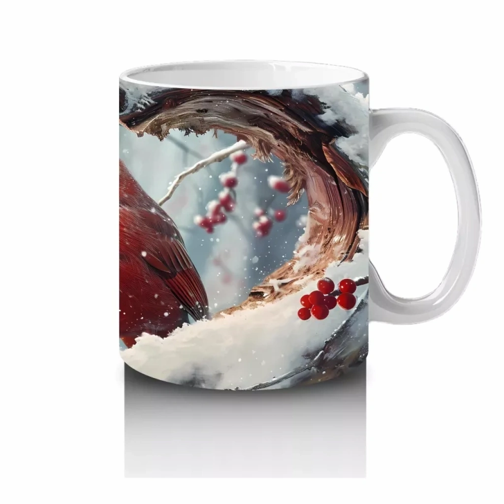 Kalpli Kış Manzarasında Kardinal Kuşu - Baskılı Kahve Kupası