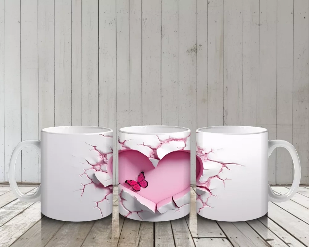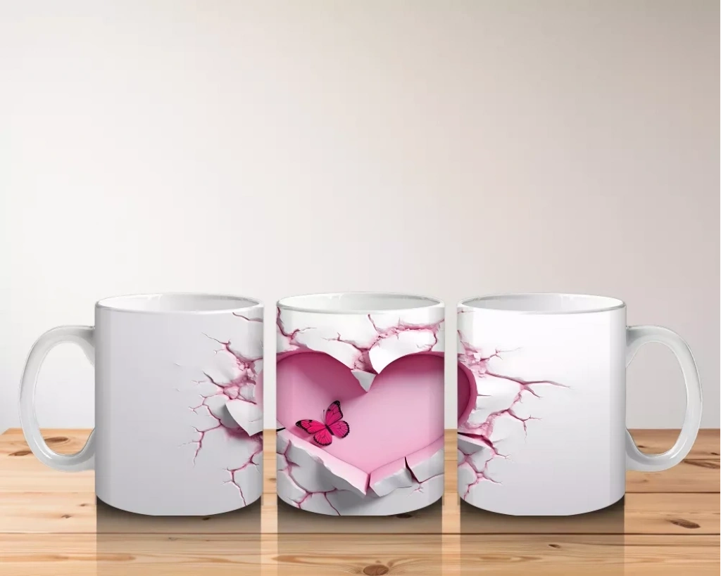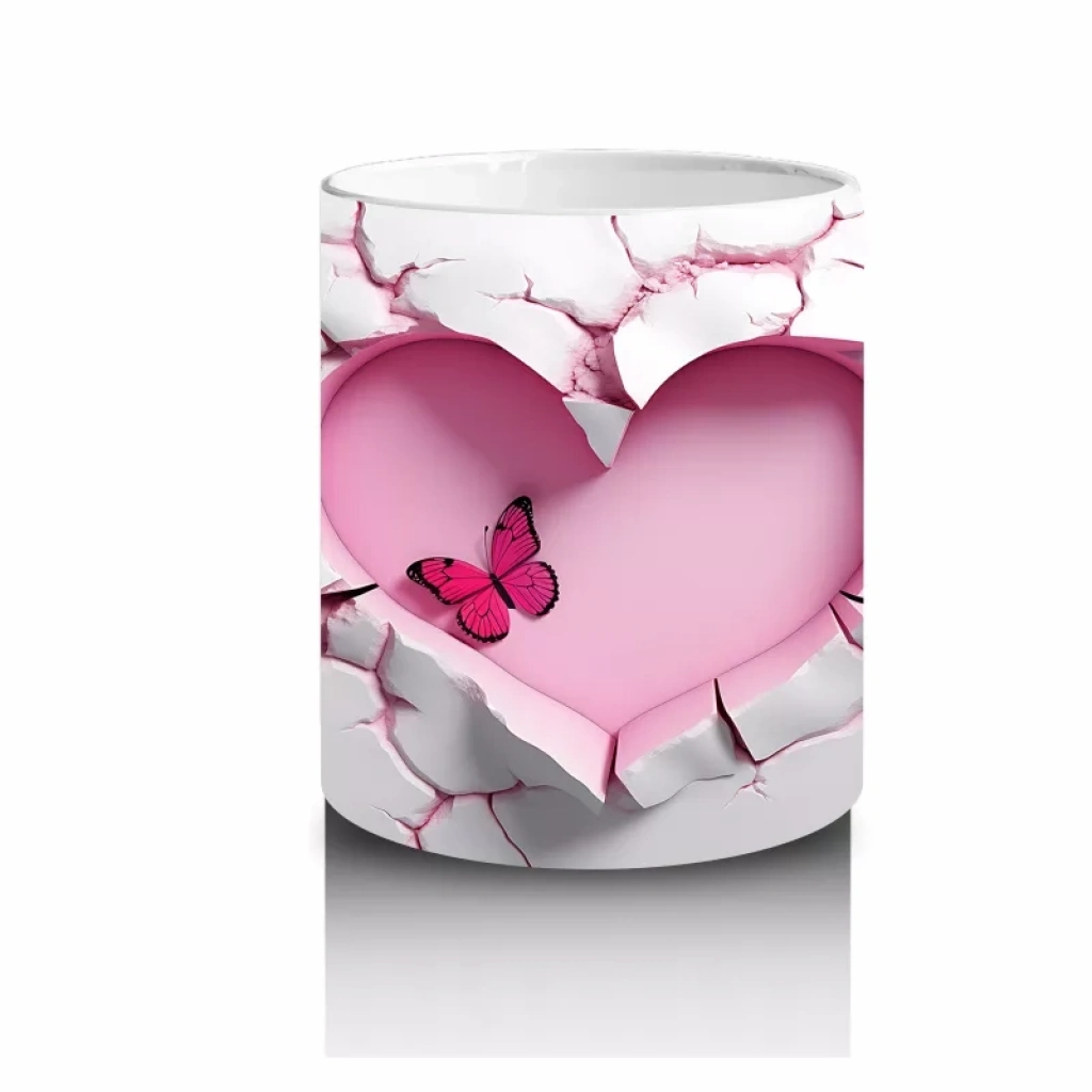 Kalpli oyuk zeminde duran sevimli kelebek figürü, romantik ve içten bir atmosfer yaratıyor. Sıcak ve şirin tasarımlar arayanlar için özel bir kupa.