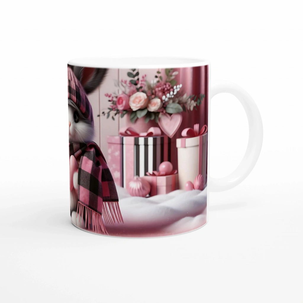 Kalpli Şapkalı Tavşan Temalı Baskılı Kupa Bardak, pembe armağan kutuları, yumuşak kürk efekti ve sevimli bakışlarla romantik anların sembolü oluyor. Kış aylarında ya da özel günlerde sevdiklerinize verilebilecek anlamlı ve içten bir hediye seçeneğidir.