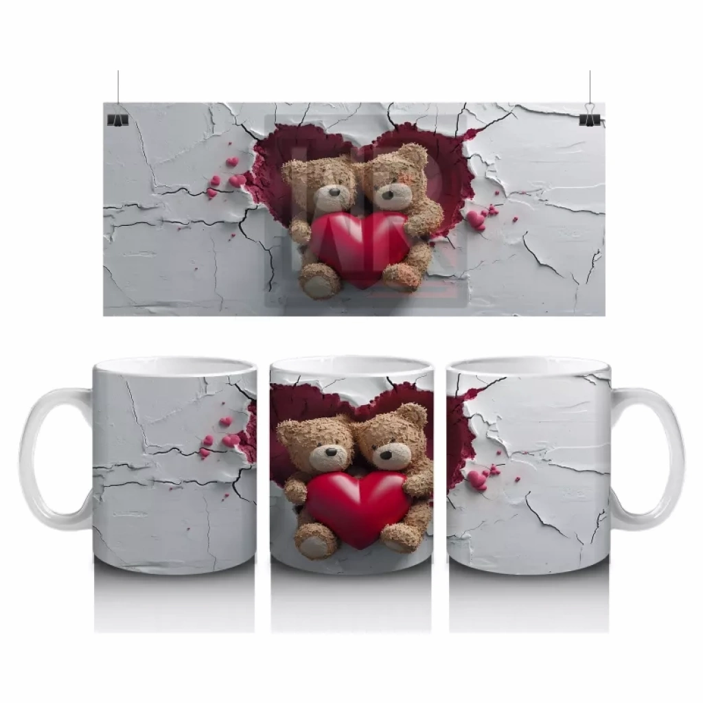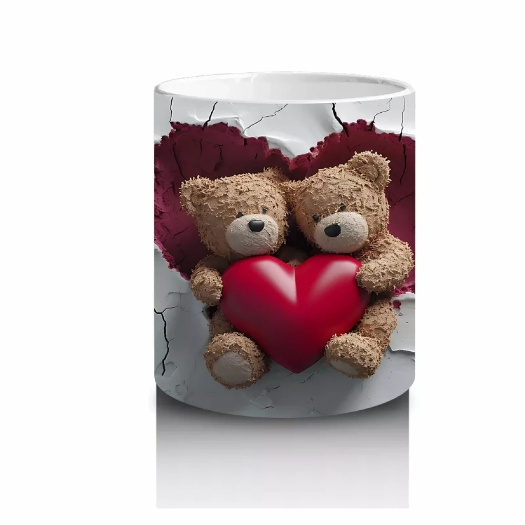 Kalpli Yastık Tutan Sevimli Ayıcıklar – Baskılı Kahve Kupası