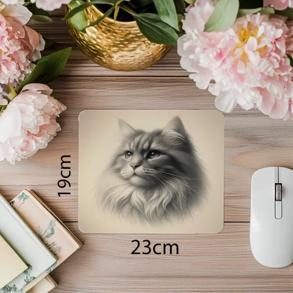 Karakalem kedi çizimli mousepad – sanatsal tasarımıyla masanda zarafet ve şıklık! İnce çizimler ve konforlu yüzeyiyle performansını artır.