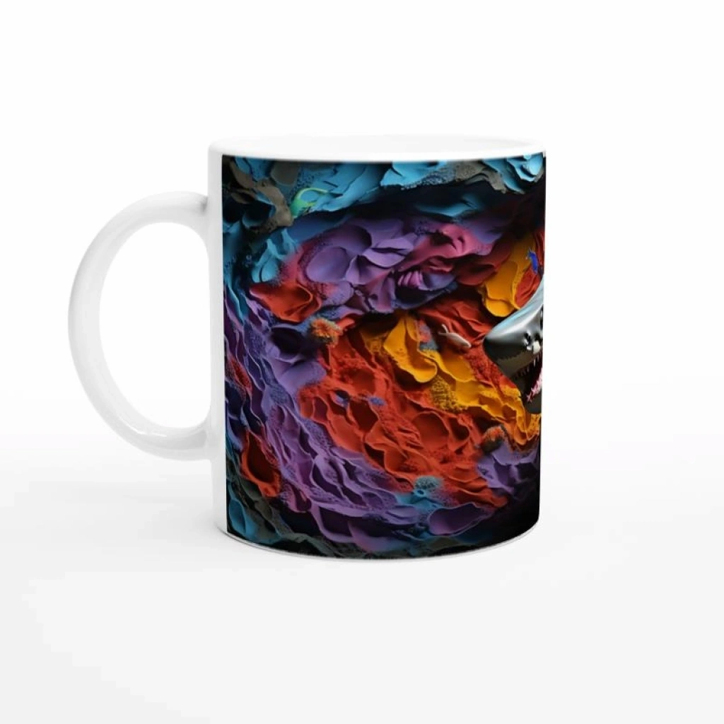 Cesur renk kontrastları ve güçlü kompozisyonuyla dikkat çeken bu kupa bardak, sıradışı deniz temalı hediyeler arayanlar için birebir.