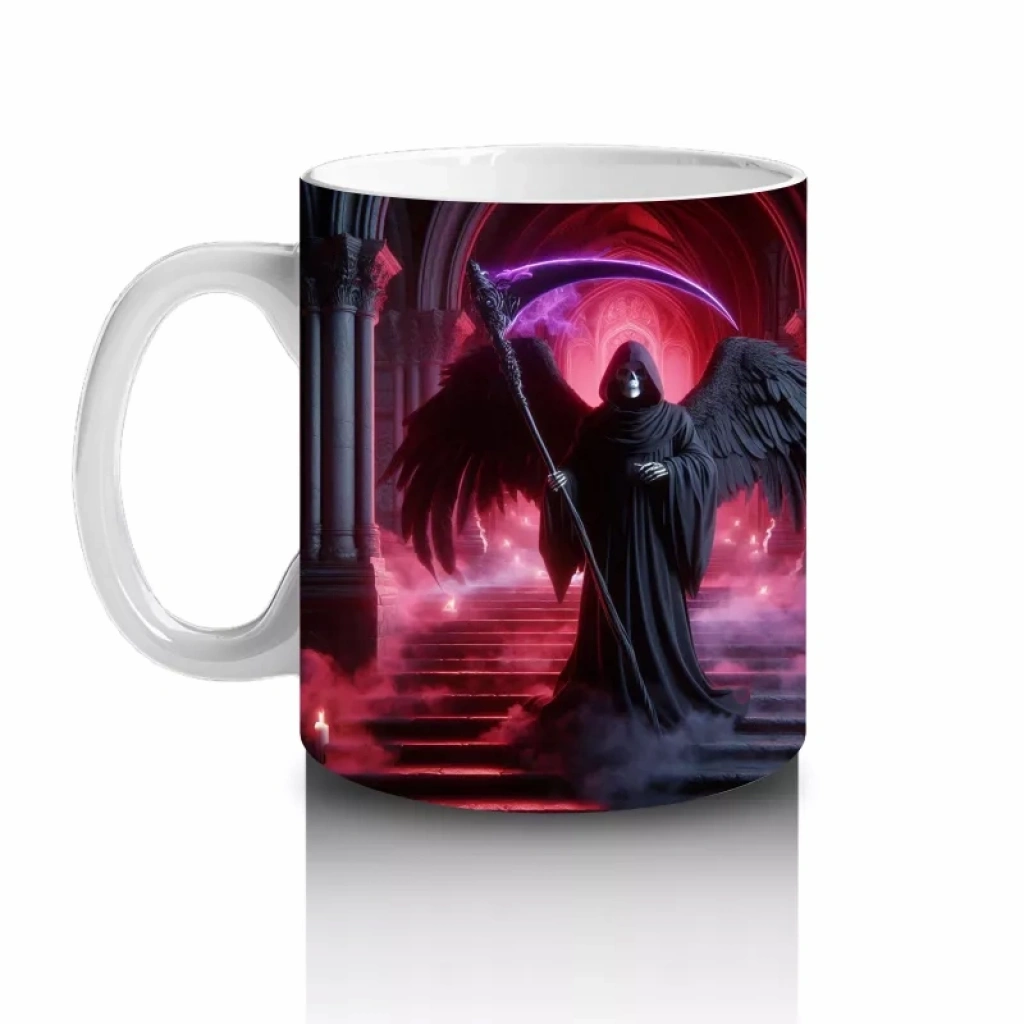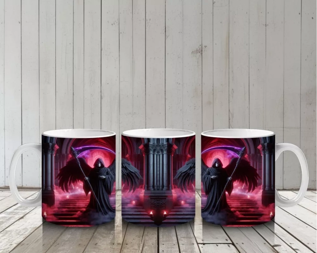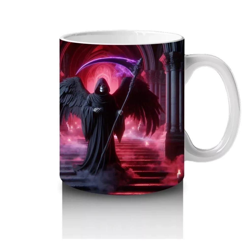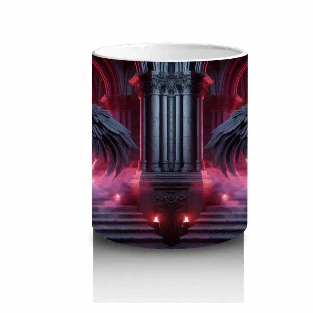 Karanlık ormanda kırmızı ışıklarla aydınlatılmış vampir figürüyle hazırlanan bu kupa bardak, Cadılar Bayramı’na korkutucu ve etkileyici bir atmosfer ekler.