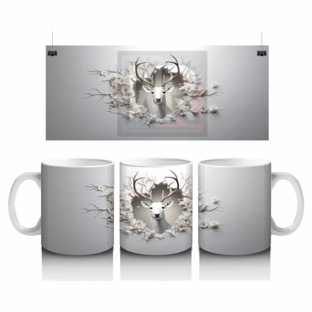 Karlı dalların arasında gizlenmiş geyik silueti, sakinlik ve doğallık hissi uyandırıyor. Minimalist ve huzur veren tasarımlardan hoşlananlar için ideal.