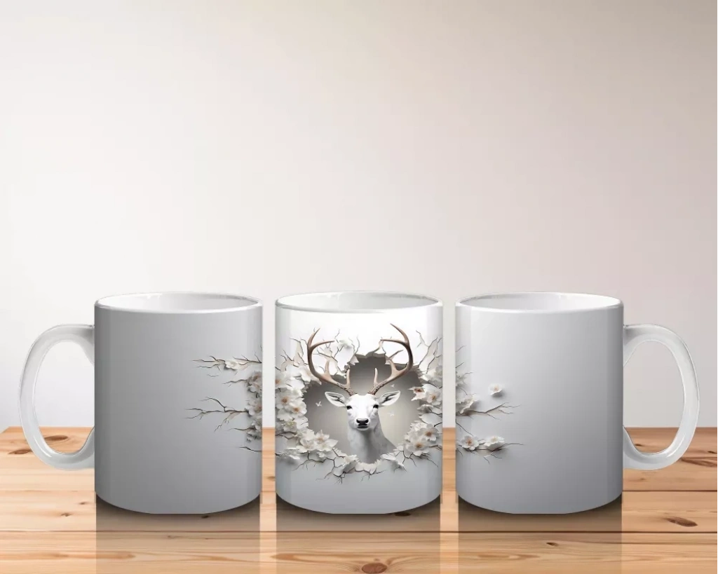 Karlı Dallar Arasında Geyik Silueti – Baskılı Kahve Kupası