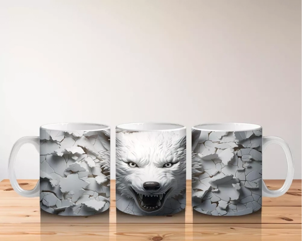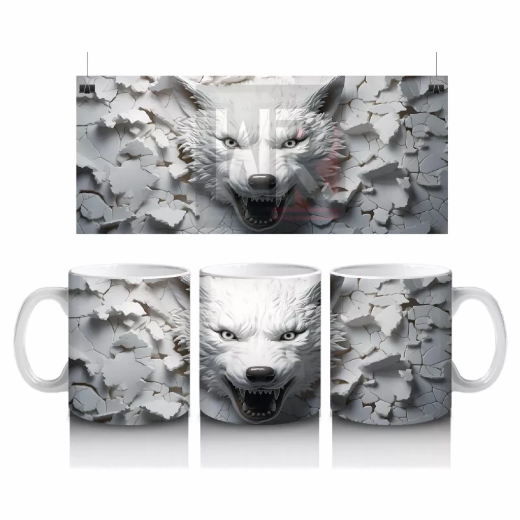Karla kaplı duvarın önünde, gizemli bakışlarıyla parlayan gri kurt figürü… Doğanın vahşi güzelliğini yansıtan bu tasarım, özgürlüğü ve gücü sevenlere özel. ❄️?
