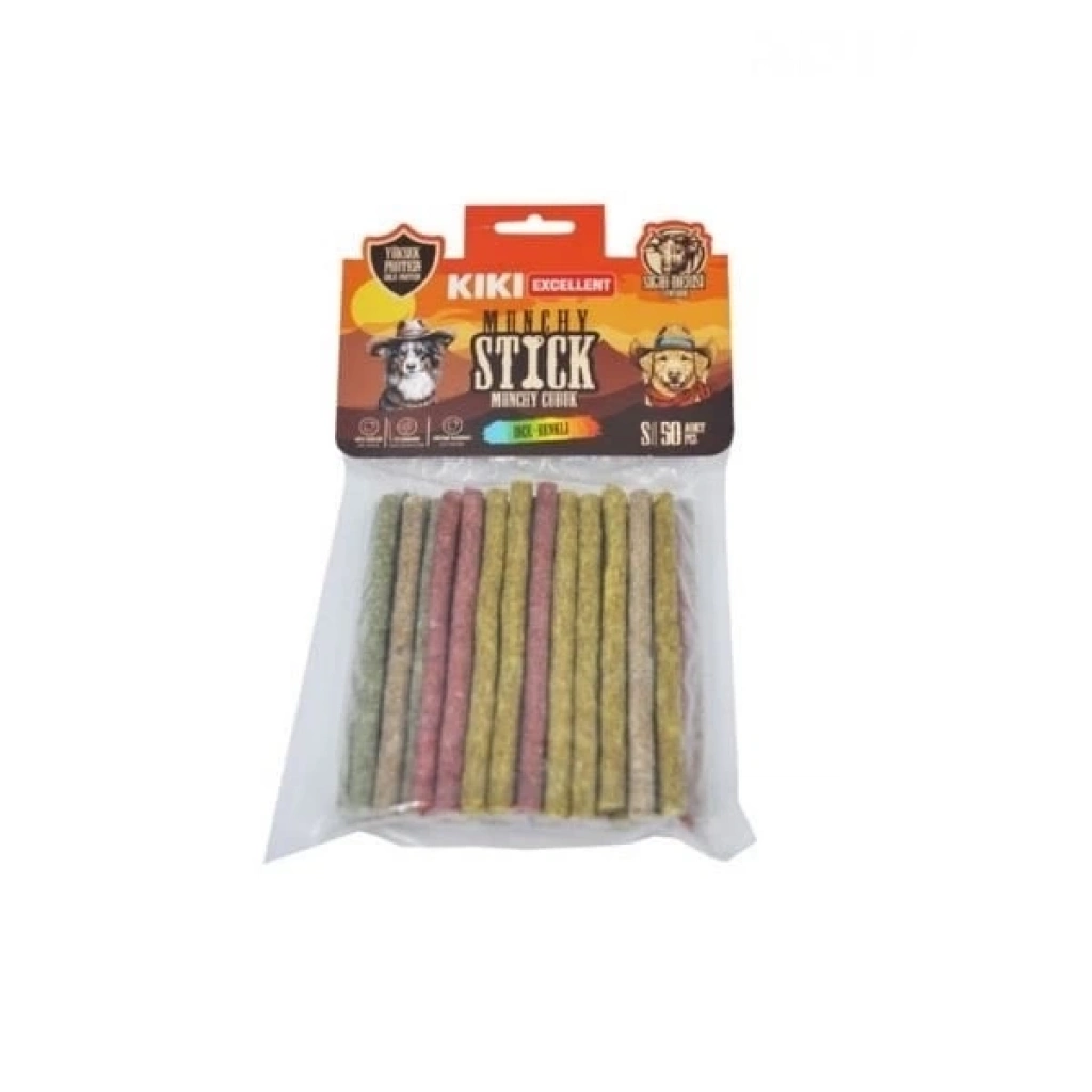 Kiki Excellent İnce Munchy Sığır Derisinden Çubuk Kemik Köpek Ödülü 50 Adet Renkli