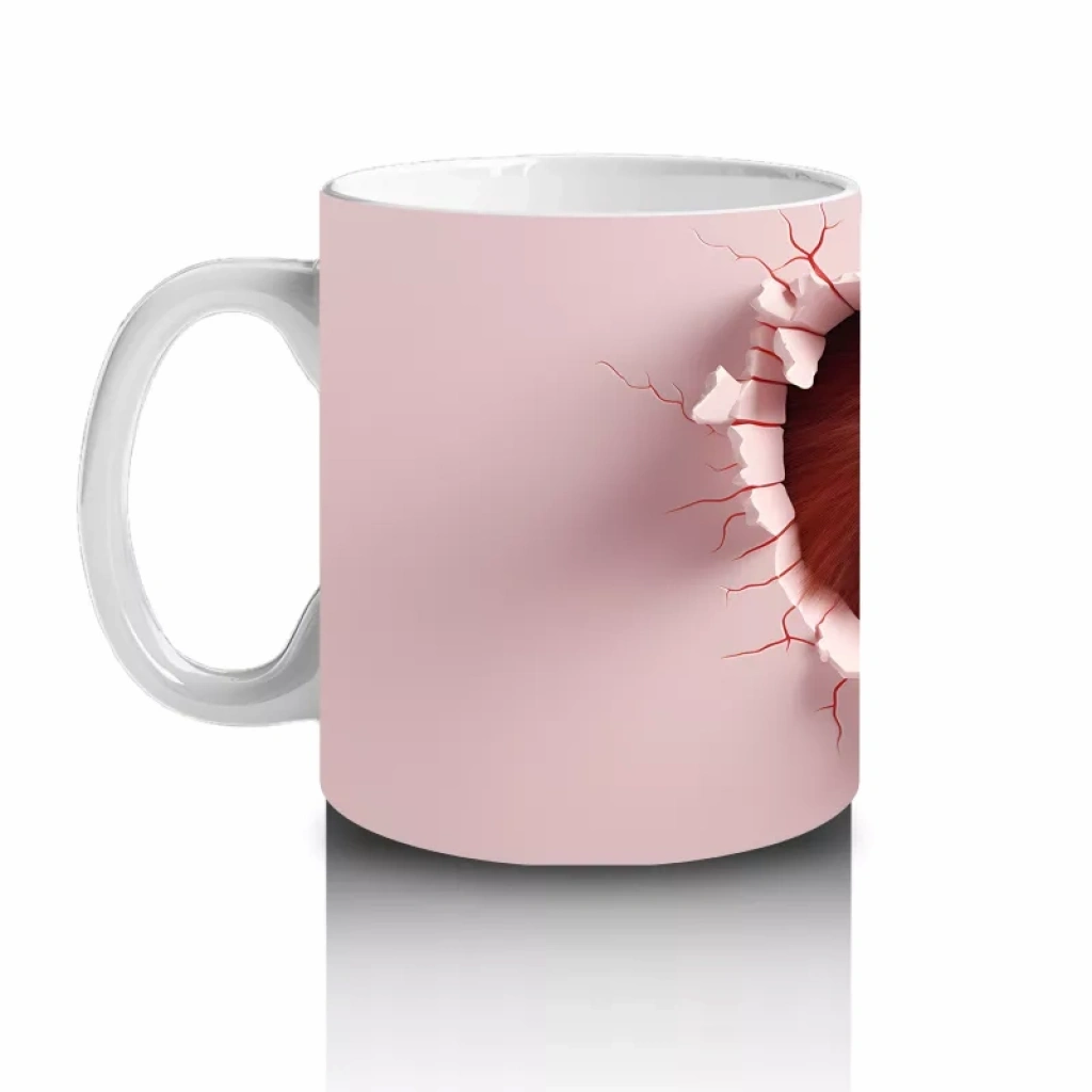 Kırık duvar arasından bizi izleyen maymun figürü, neşeli ve samimi bir atmosfer yaratıyor. Eğlenceli ve sıcak tasarımlar arayanlar için ideal bir kupa.
