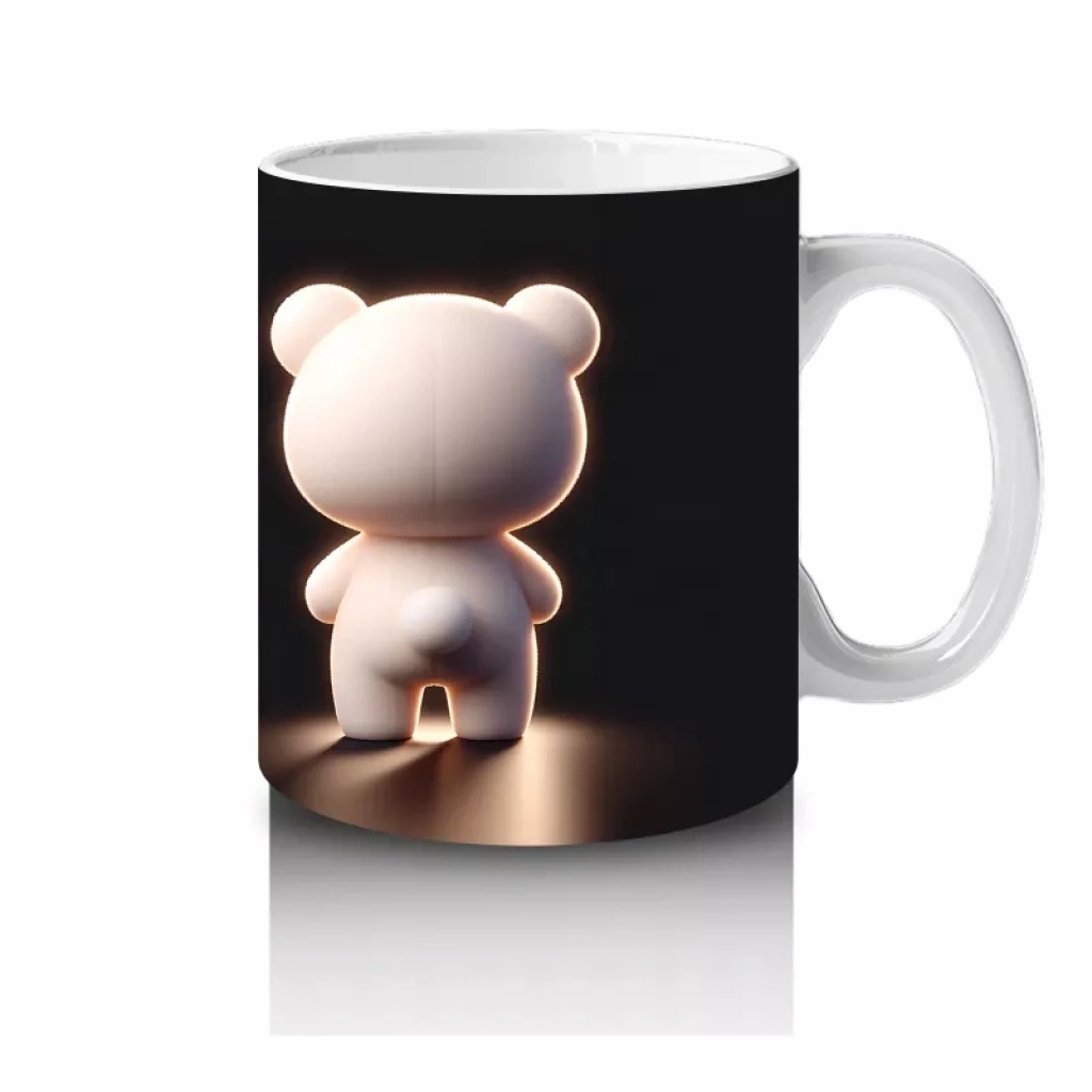 Kırmızı kalbiyle öne çıkan sevimli ayıcık, çift yönlü tasarımı sayesinde her açıdan dikkat çekiyor. Hem sevimli hem duygusal detaylarla bezenmiş bu kupa, özel günler için ideal.