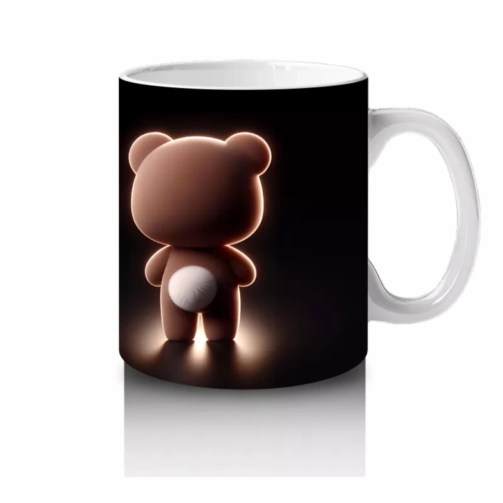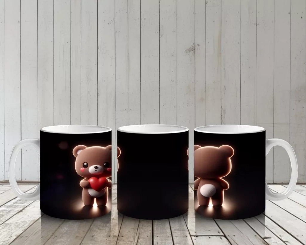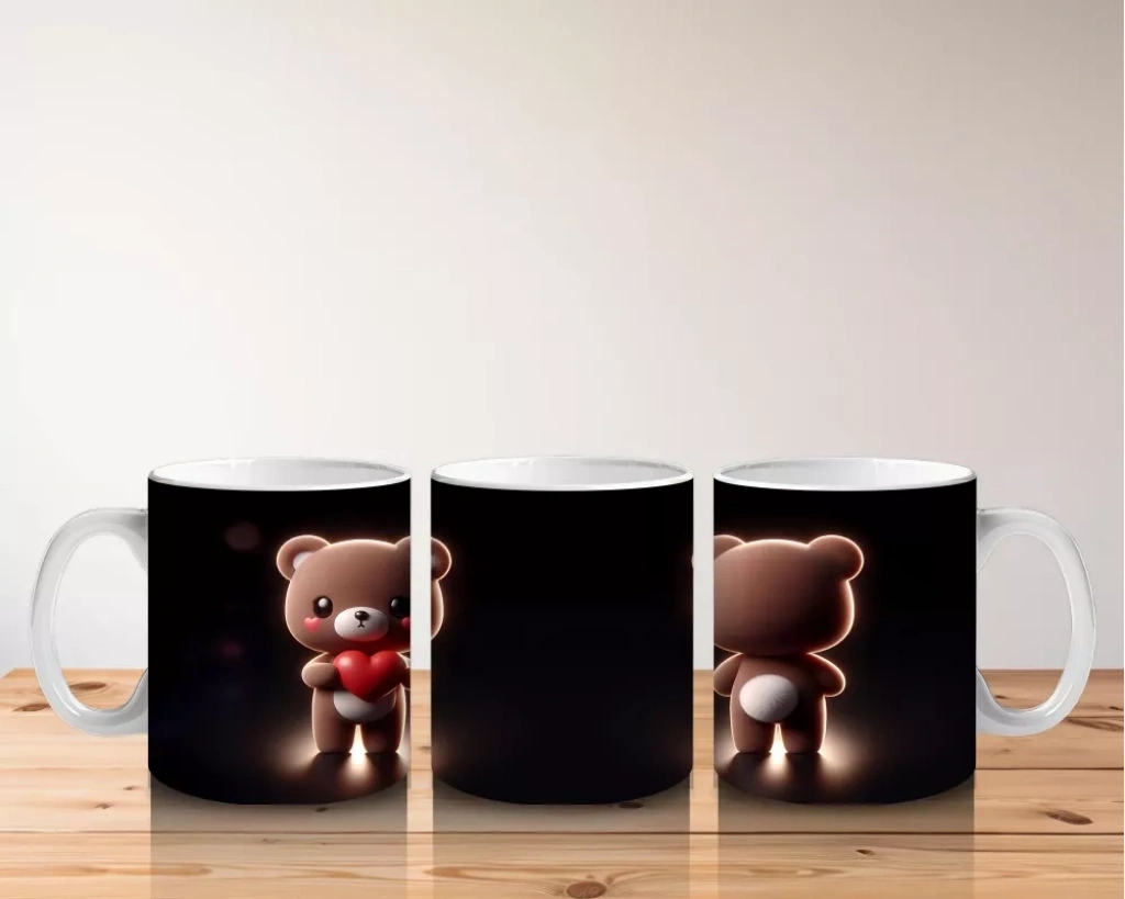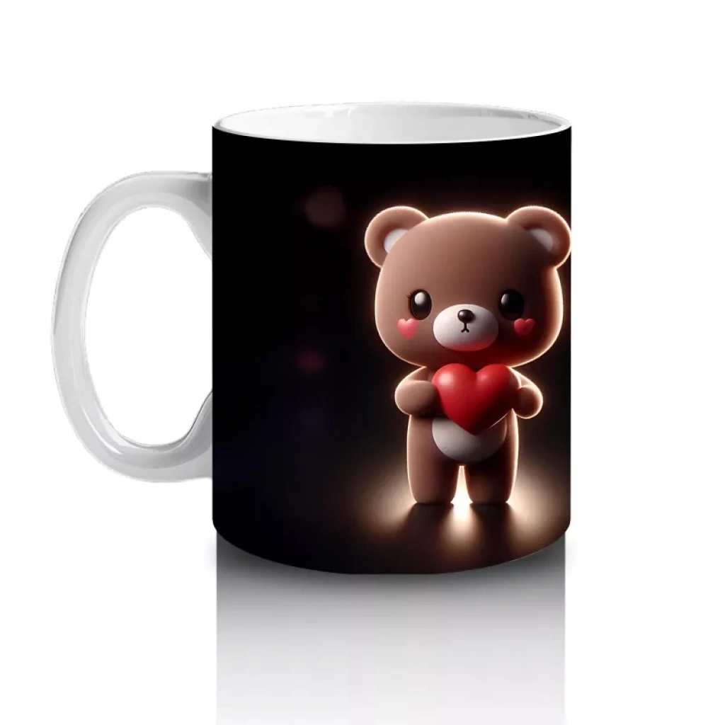 Kırmızı kalbiyle sevgi mesajı veren bu tatlı kahverengi ayıcık, romantik ve içten bir atmosfer yaratıyor. Aşk dolu anlara eşlik edecek sıcacık bir kupa tasarımı.