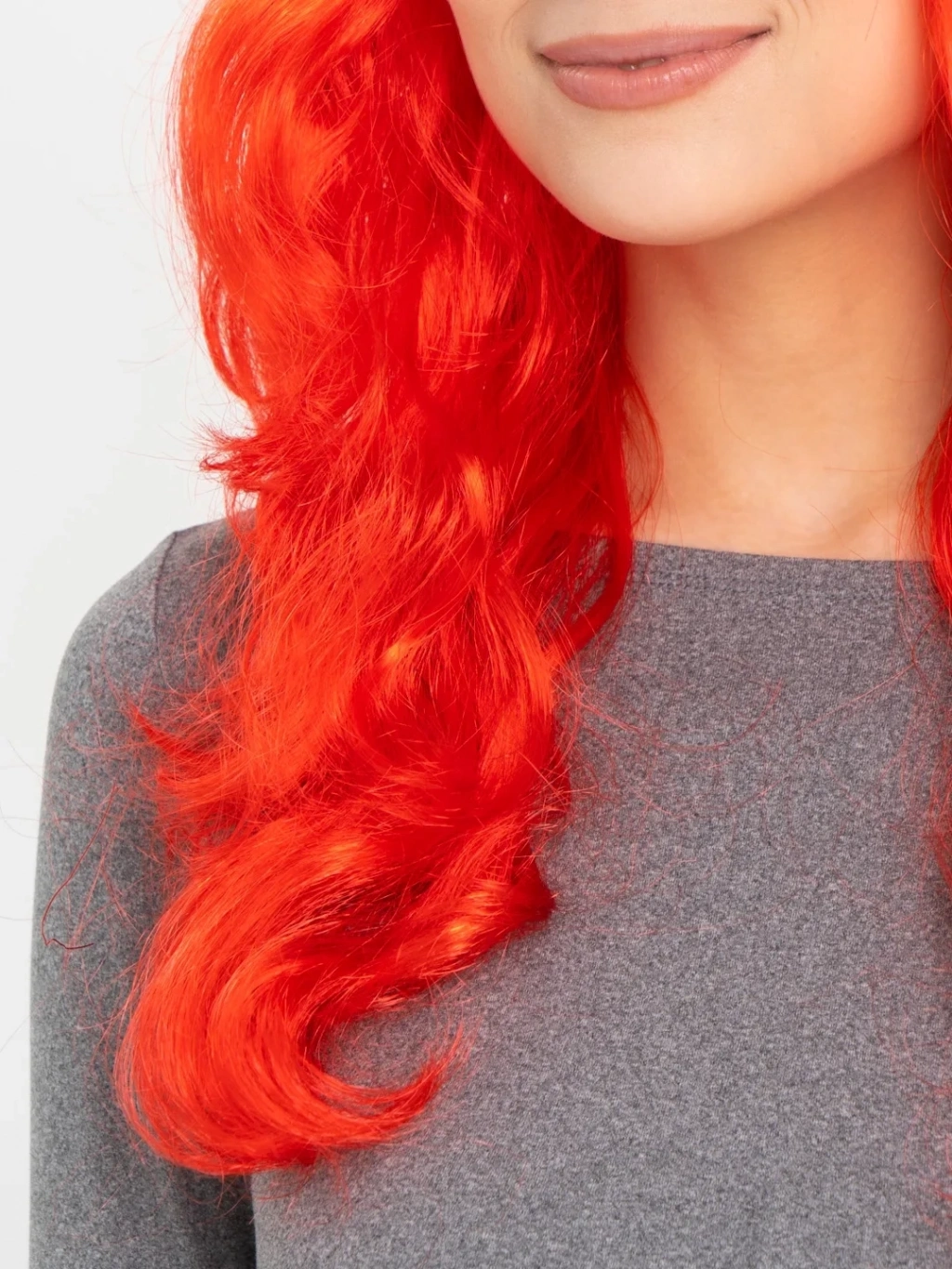 Kırmızı Renk Uzun Dalgalı Parti Peruğu