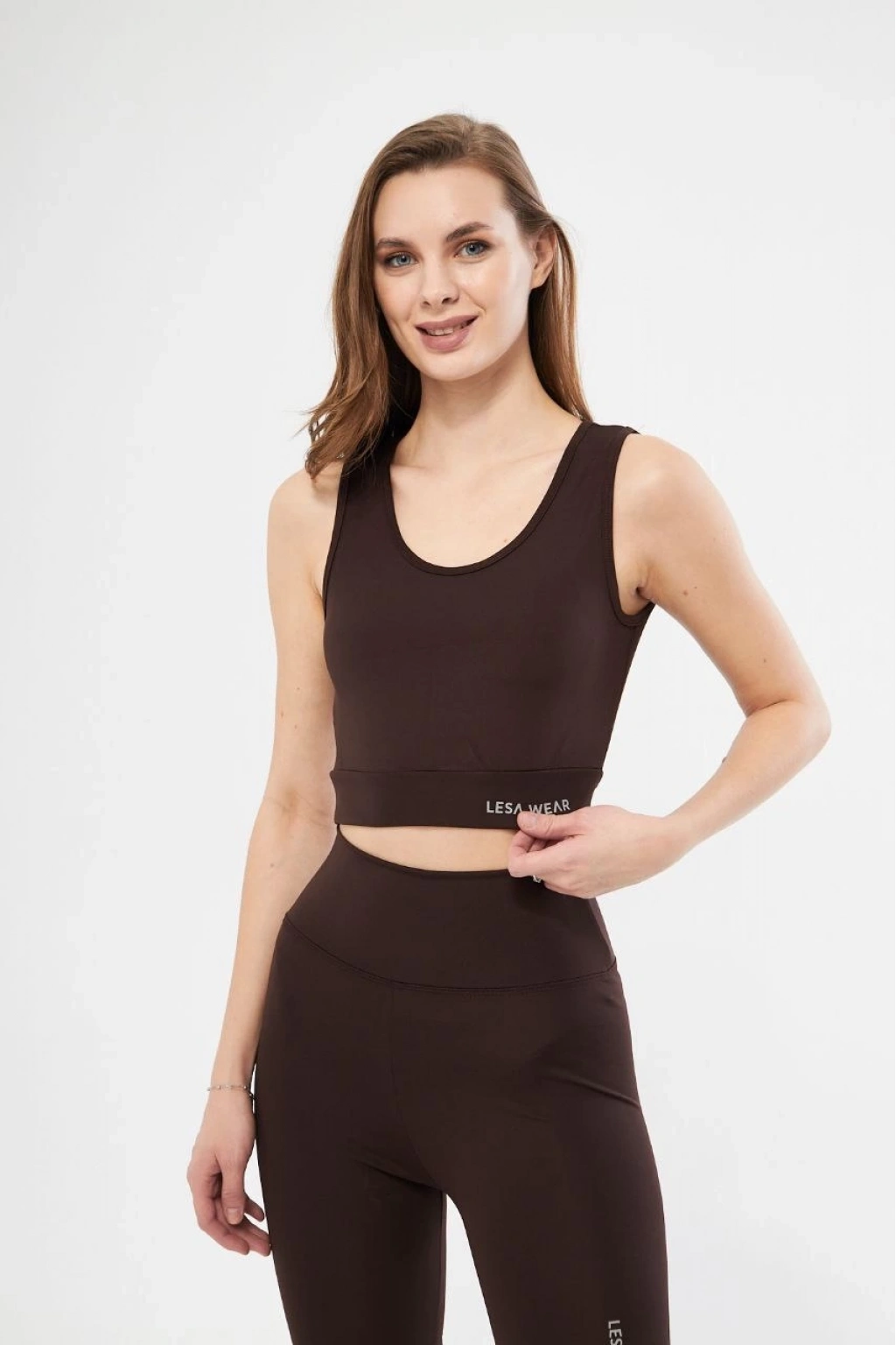 Kolsuz Sporcu Baskılı Crop - Kahve