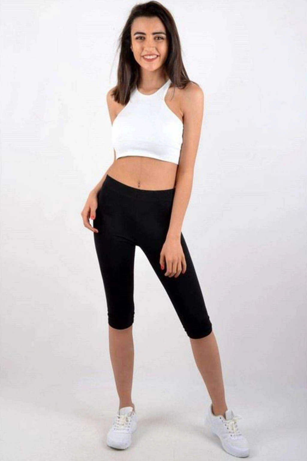 Kota Kadın Kapri Sporcu Likralı Düz Tayt Siyah 4005