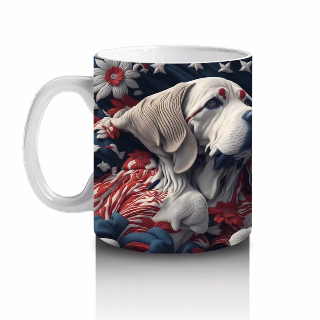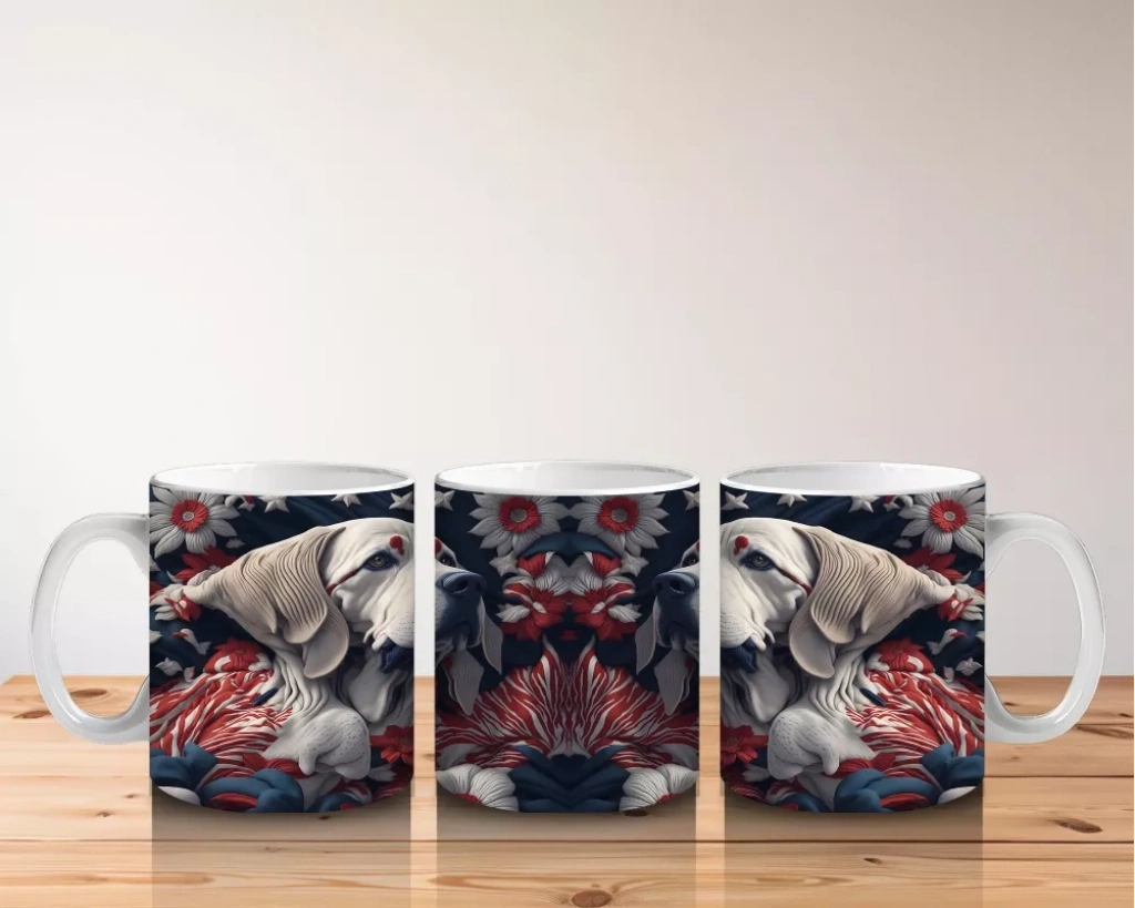 Koyu Çiçek Desenleri Önünde Zarif Köpekler – Baskılı Kahve Kupası