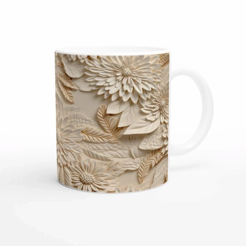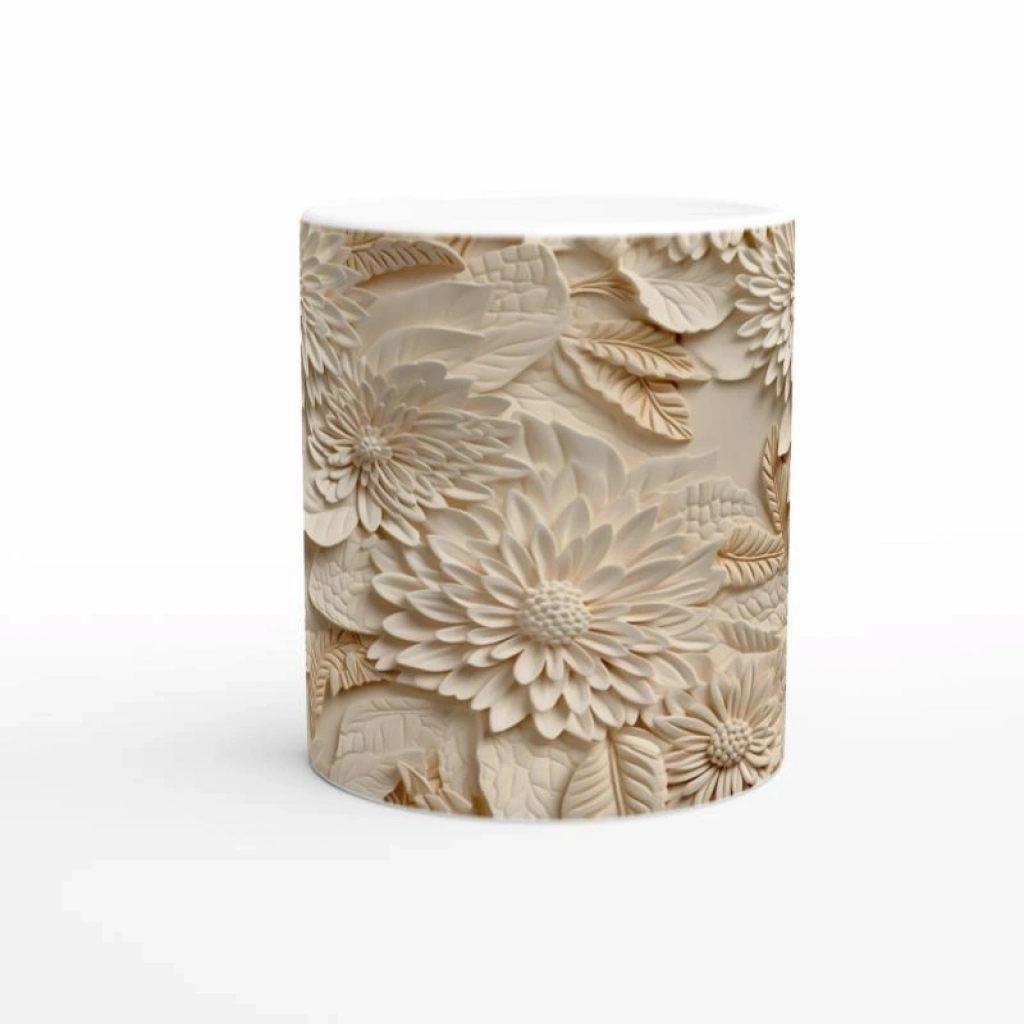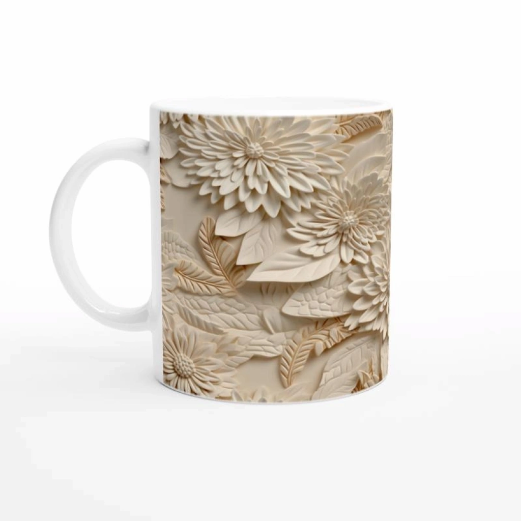 Krem Çiçek Dokulu Kupa Bardak, doğal ve sofistike tasarımıyla hem klasik hem modern dekorlara uyum sağlar.