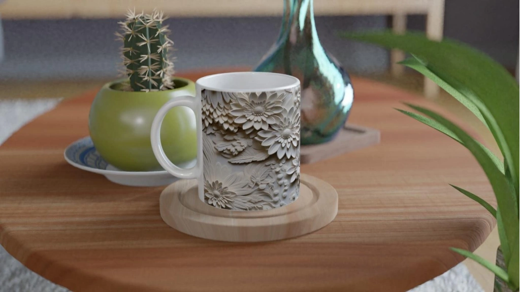 Katmanlı rölyef çiçek dokusu ve yumuşak tonlarıyla bu kupa bardak, huzurlu bir içim deneyimi yaratır.