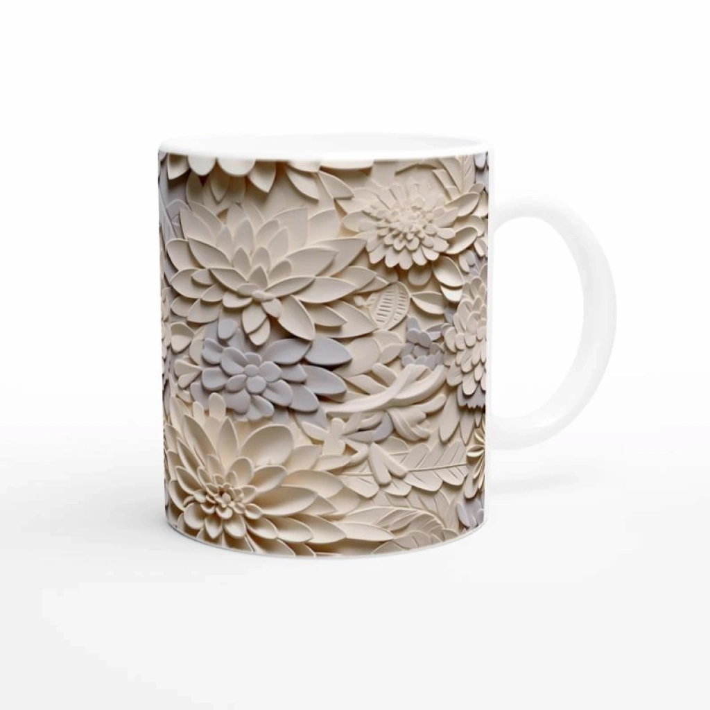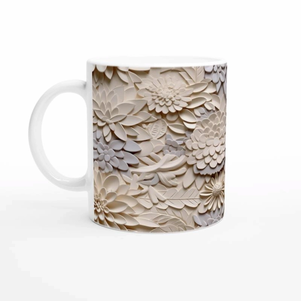 Krem Rölyef Çiçek Harmanı Kupa Bardak