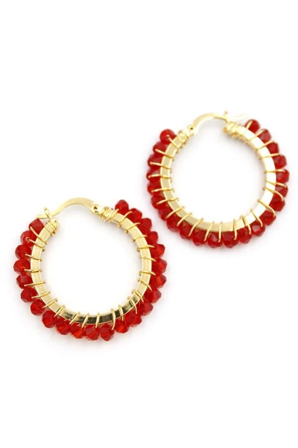 Kristal Boncuk Halka Küpe - Kırmızı