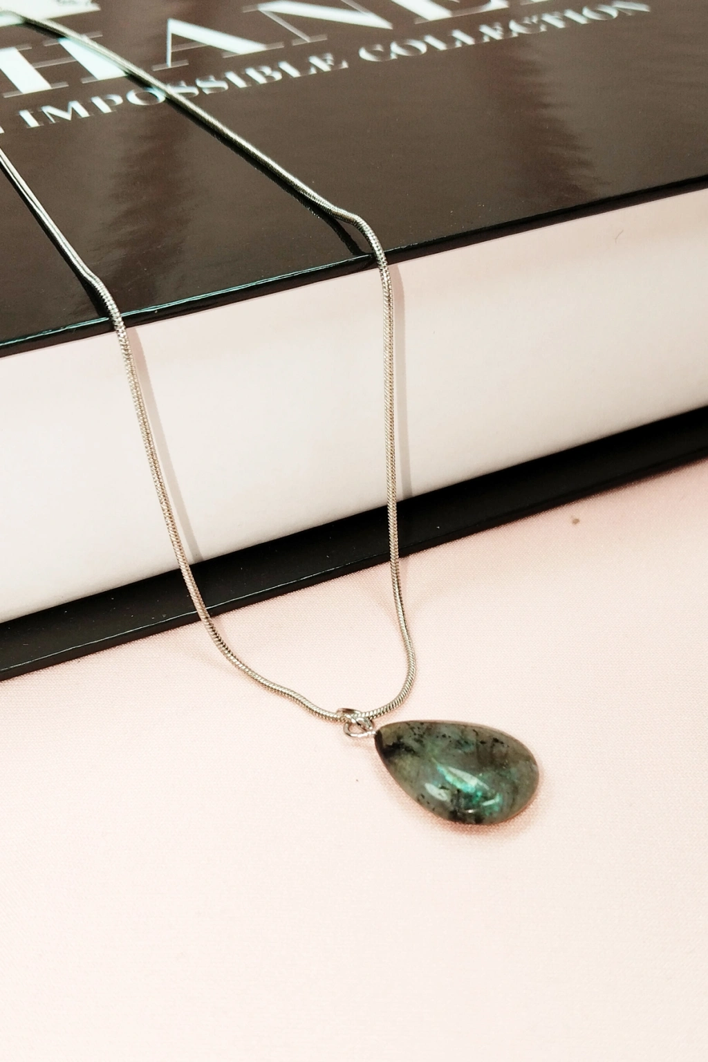 Labradorit Doğal Taşı Zincirli El Yapımı Kolye Uç: 2 cm Zincir: 20 cm Kutulu