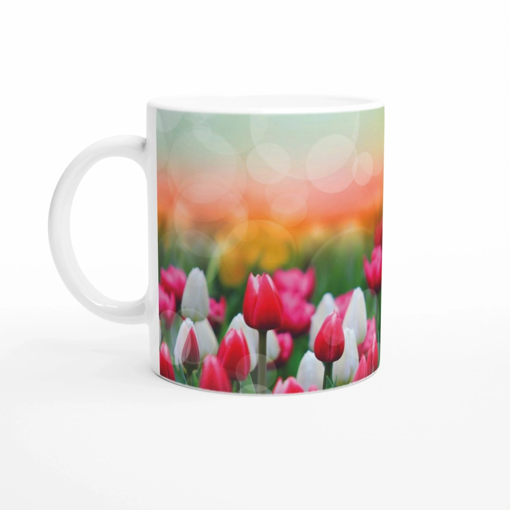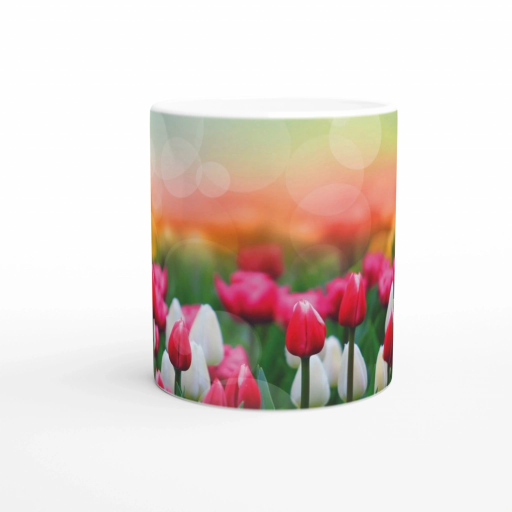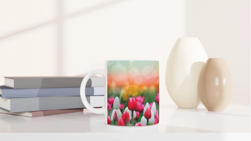 Lale Bahçesi Manzaralı Kupa Bardak, canlı tonlardaki laleleri ve flu gün batımı fonuyla içecek keyfinizi pastoral bir deneyime dönüştürür. Baharın neşesini ve doğanın canlılığını yansıtan bu tasarım, hem estetik hem de duygusal bağ kuran bir hediye alternatifi olarak öne çıkar.