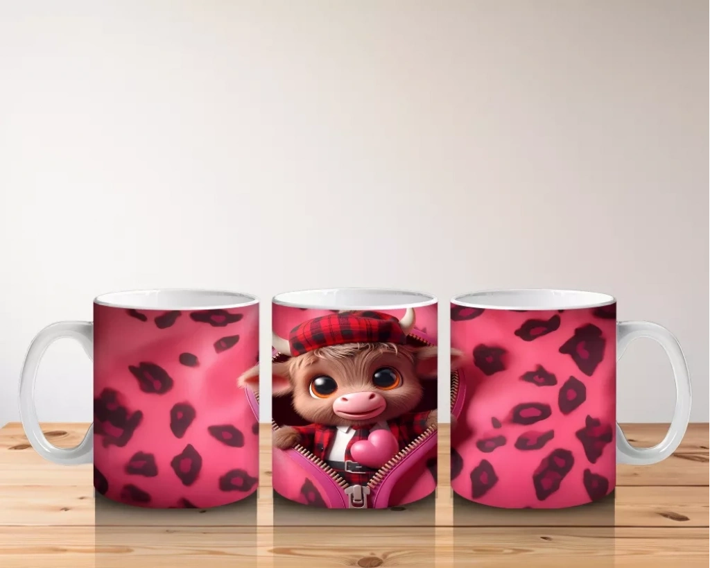 Leopar Desenli Arka Planda Aşık Ayıcık – Baskılı Kahve Kupası