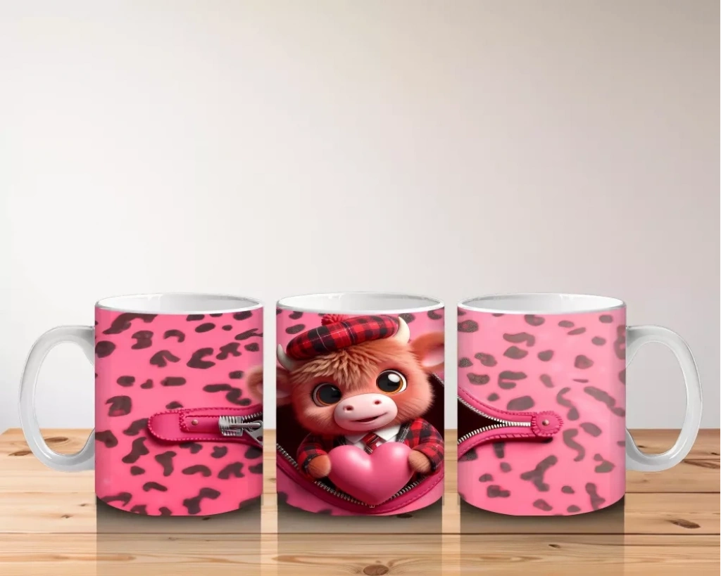 Leopar Desenli Kalpli Zeminde Sevimli İnek Karakteri – Baskılı Kahve Kupası