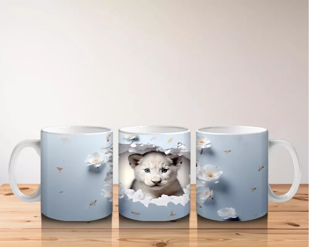Mavi fonun sakinliğiyle birleşen bu şirin yavru kaplan, vahşi doğanın minik ve tatlı bir temsilini sunuyor. Enerjik ve sevimli bir atmosfer yaratmak isteyenler için ideal bir kupa seçimi.