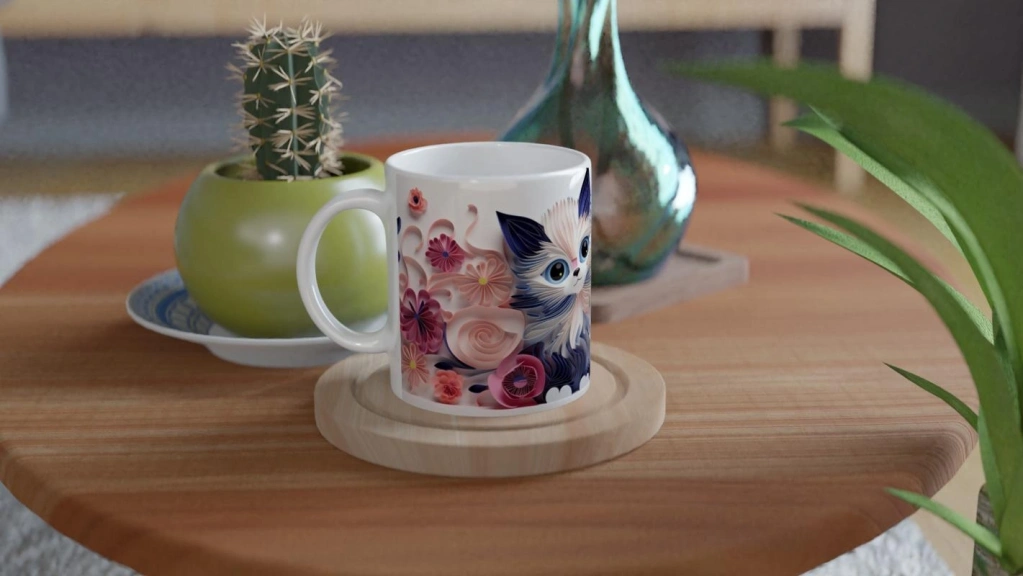 Mavi Gözlü Sevimli Kedi ve Çiçek Bahçesi Temalı Baskılı Kupa Bardak, hem çocuk ruhunu koruyanlara hem de dekoratif tasarımlardan hoşlananlara özel. Masalsı bir dokunuş arayanlar için ideal bir hediye!