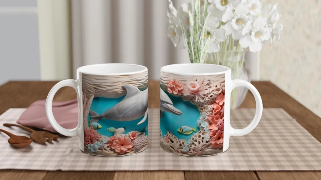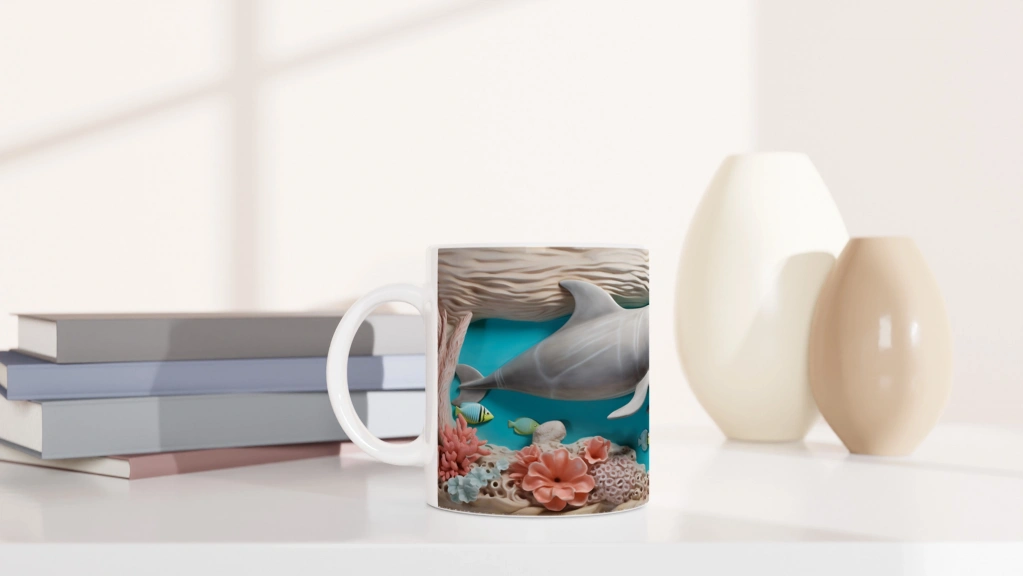 Canlı mercan renkleri, oyunbaz balıklar ve masalsı bir sualtı atmosferi sunan bu yunus desenli kupa bardak, her kullanımda içinizi serinleten bir tatil hissi uyandırıyor.