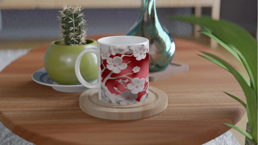 Beyaz mercan dalları ve pastel tonlu çiçeklerle süslenen bu su altı temalı kupa bardak, içecek keyfinize sanatsal bir dokunuş katıyor.