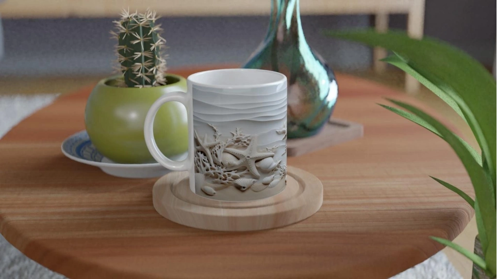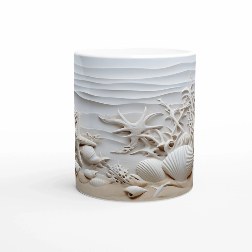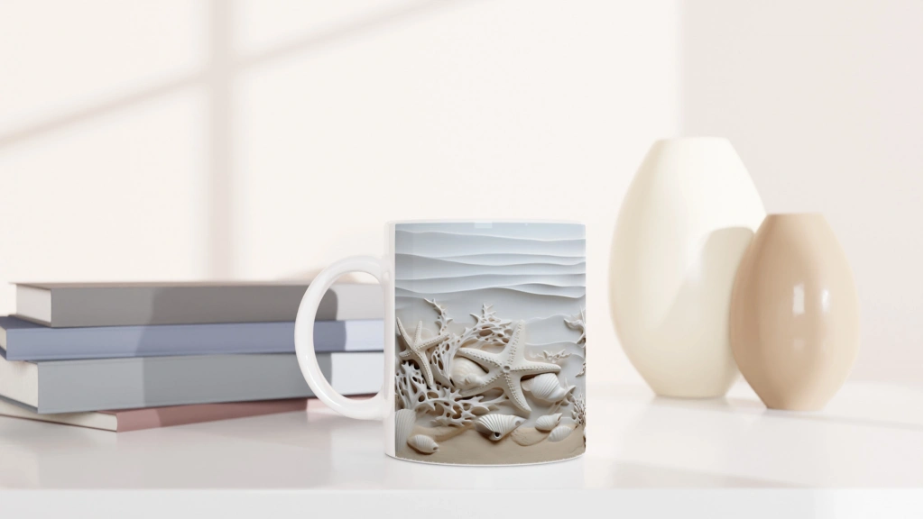 Sade tonları ve detaylı kabartma yapısıyla bu su altı temalı kupa bardak, hem dekoratif hem de huzur verici bir atmosfer yaratır.