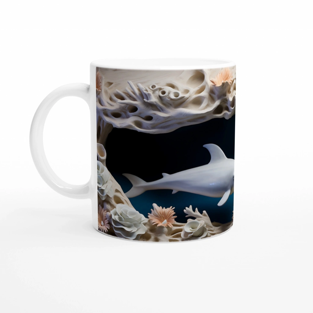 Canlı mercan dokuları ve zarif beyaz çiçek süslemeleriyle tamamlanan bu yunus desenli kupa bardak, her yudumda denizin tazeleyici esintisini hissettiriyor.ÜRÜN ÖZELLİKLERİ